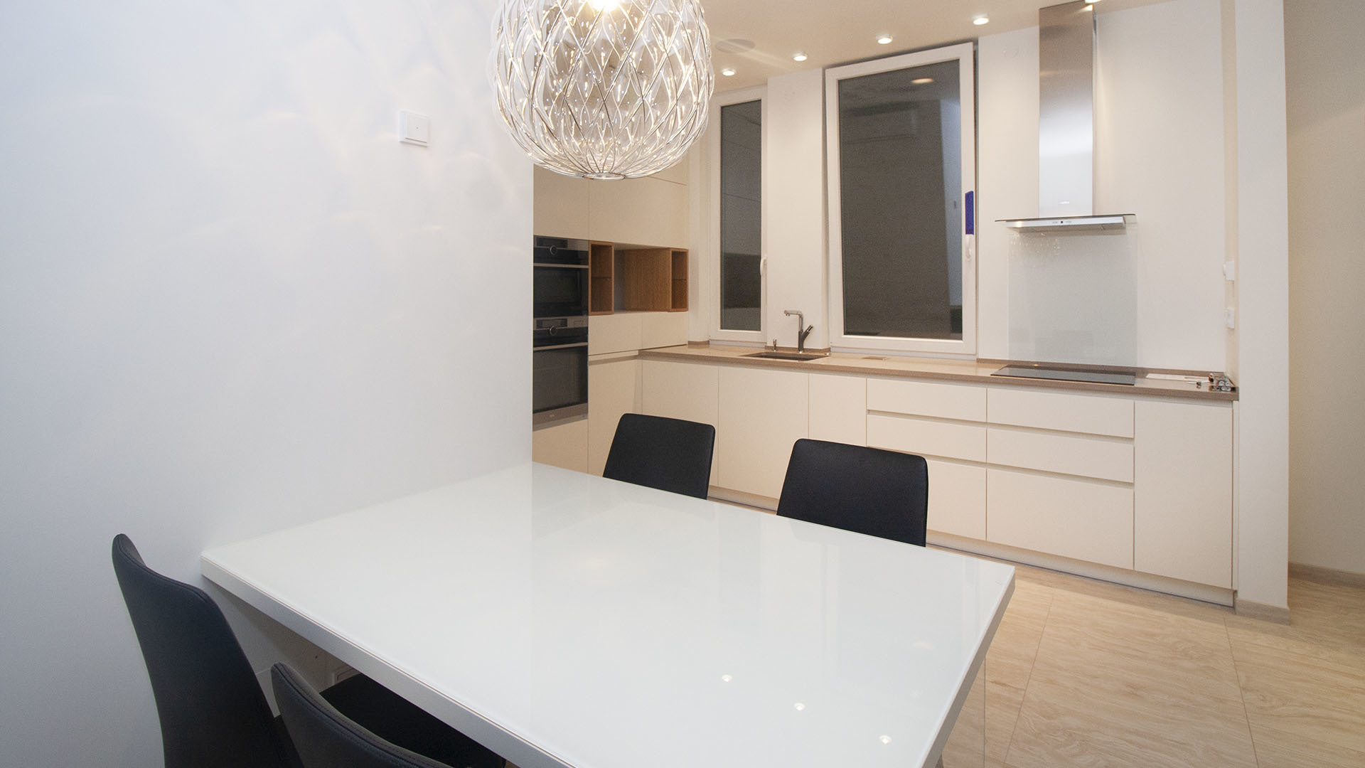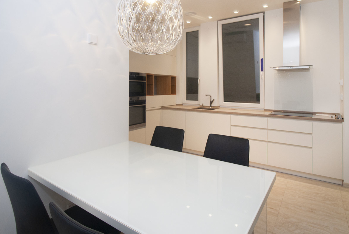 A beautifully renovated above-standard 2-room apartment in the city center is located on the 2nd floor (5). It consists of an entrance hall, a luxurious living room connected to a kitchen equipped with the most modern appliances (fridge, freezer, electric oven, stove, microwave oven), two bedrooms with separate wardrobes, a bathroom with a bathtub and a shower and a separate toilet.