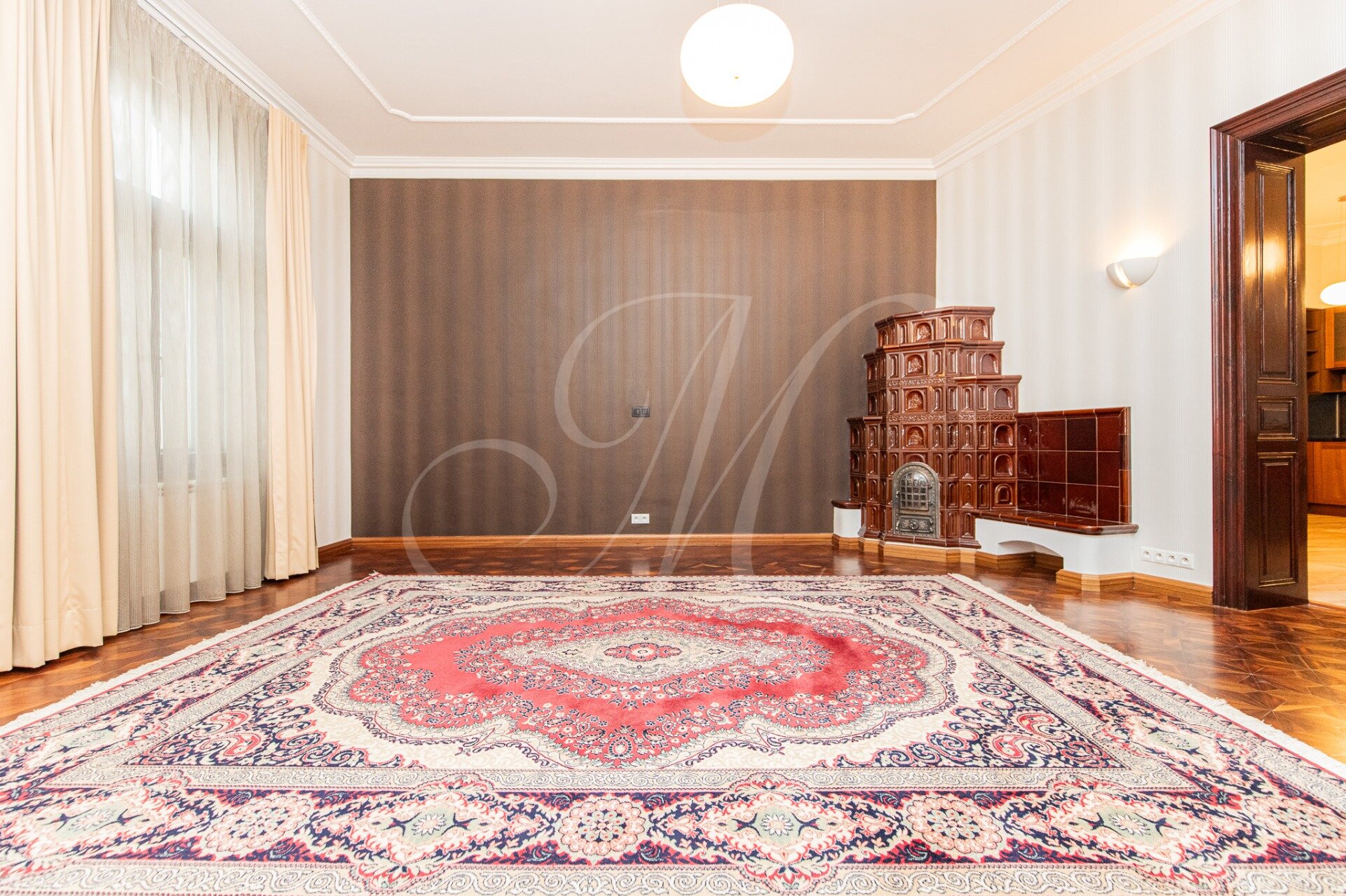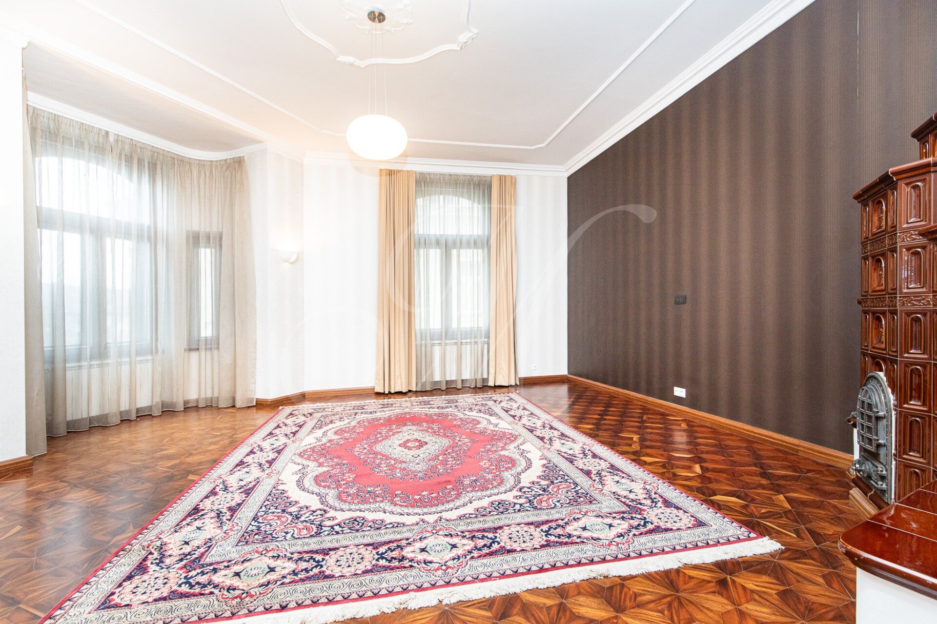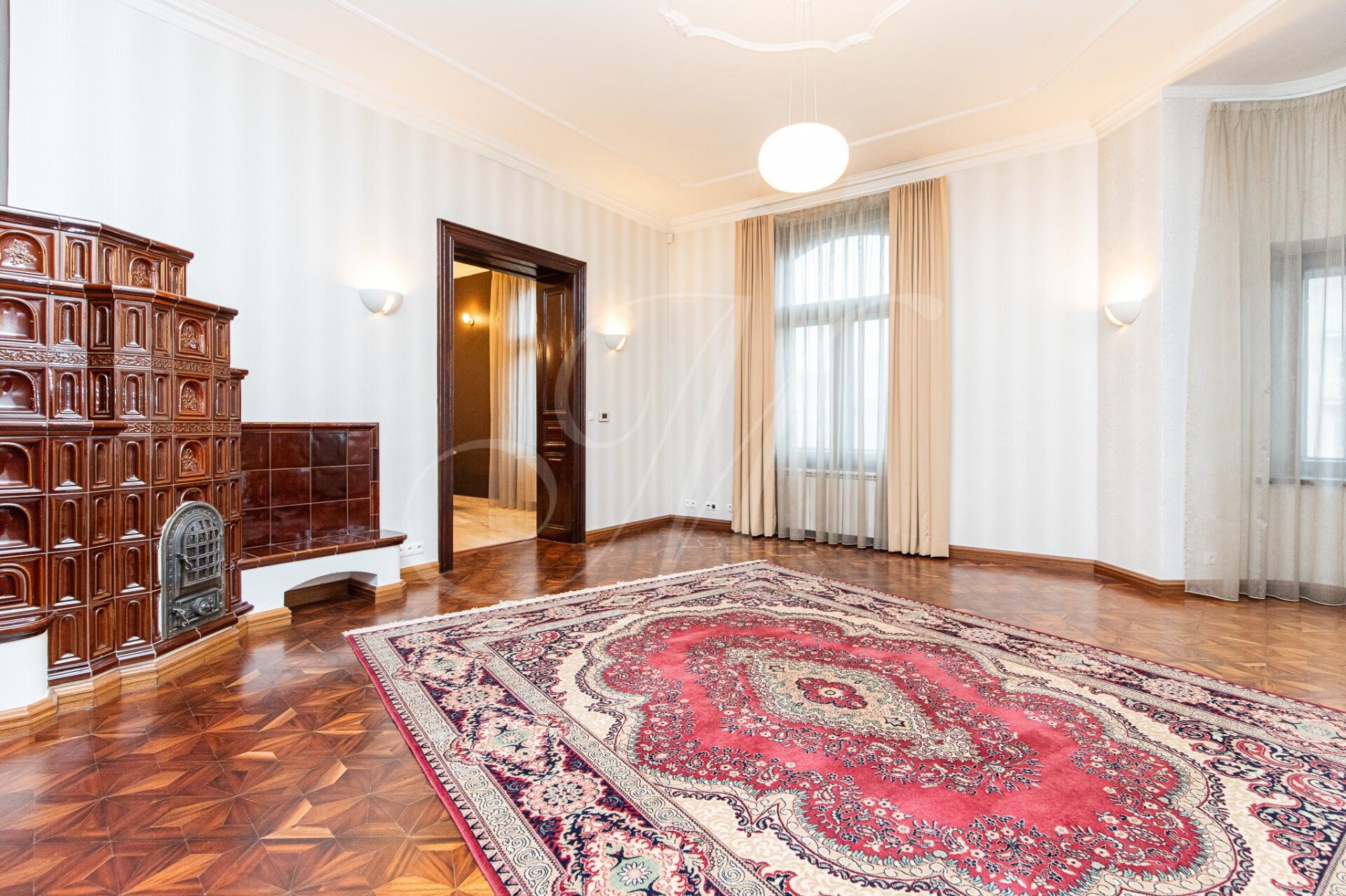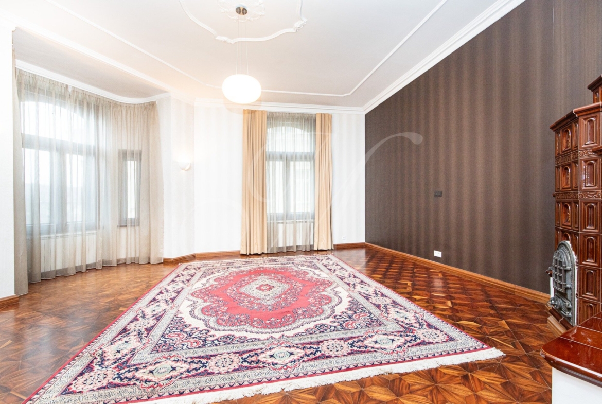 The beautiful 3.5-room apartment is located on the 2nd floor (3) of an apartment building without an elevator. The layout of the apartment consists of an entrance hall, a spacious living room with an original stove, a kitchen with Siemens appliances connected to the dining room, a double bedroom with plenty of storage space, a study/children’s room with a bathroom with a shower, WC, a bathroom with a bathtub and a shower, through the conservatory it is possible to enter another room with a wardrobe. The apartment has a winter garden with a size of 8m2.