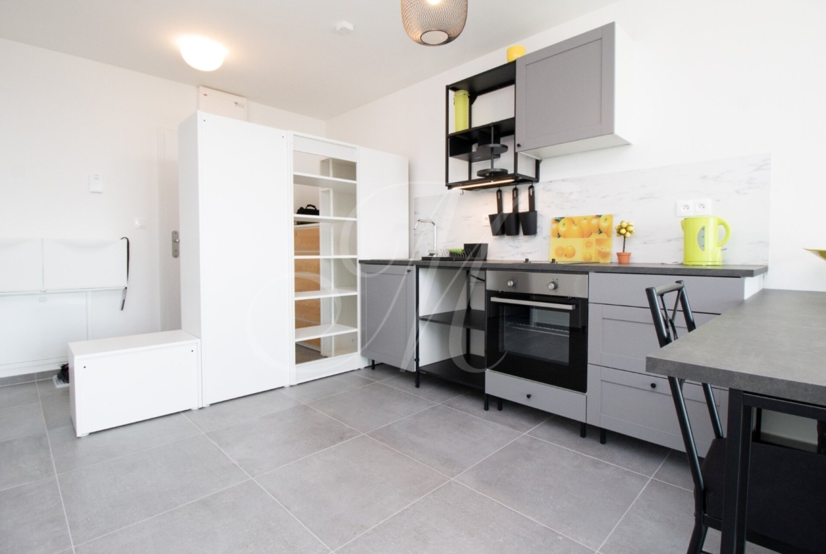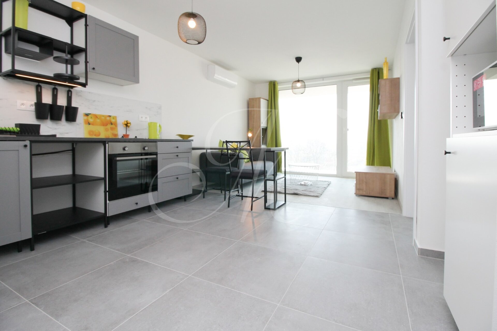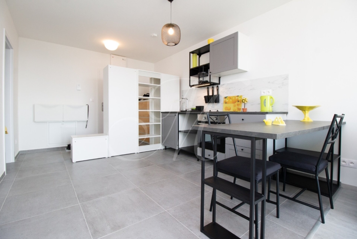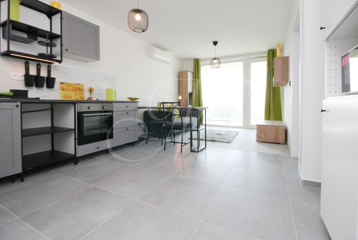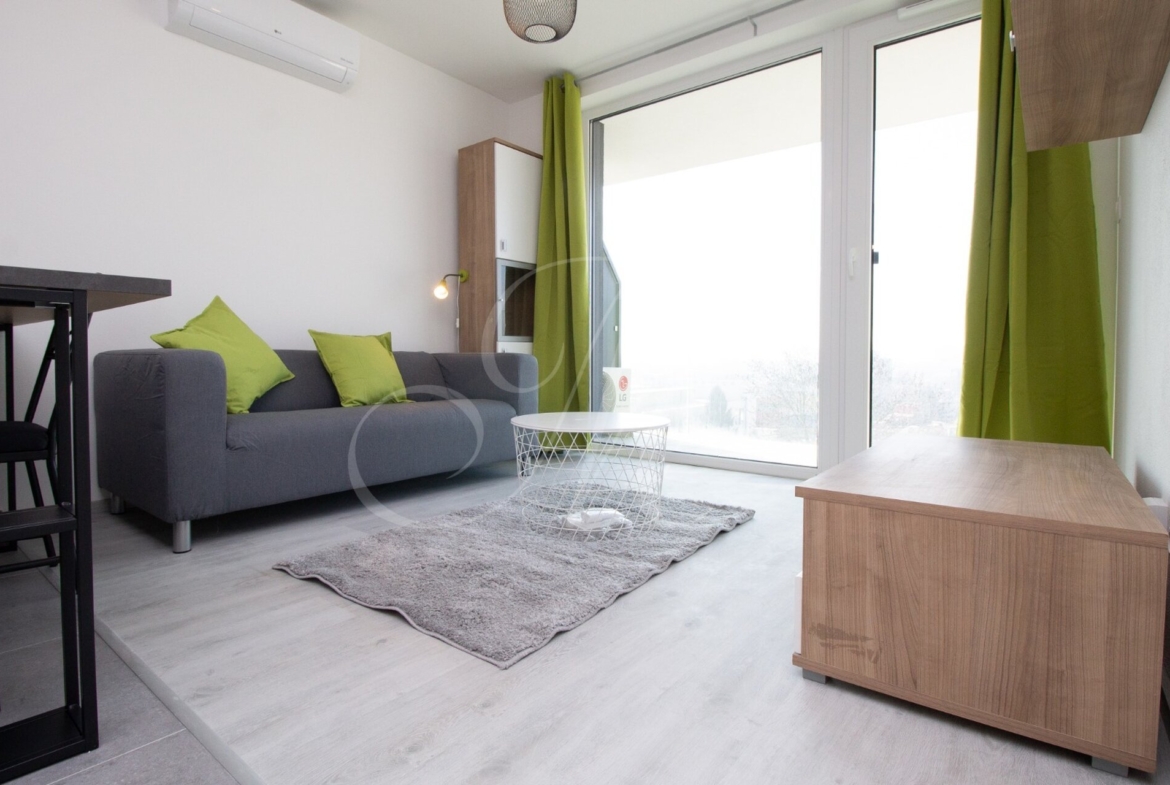 Sunny furnished 2-room apartment in a new building with a beautiful view of the castle, modernly fully furnished with underfloor heating and air conditioning, loggia, garage parking space and storage space / warehouse right next to the apartment in the new building Matadorka.