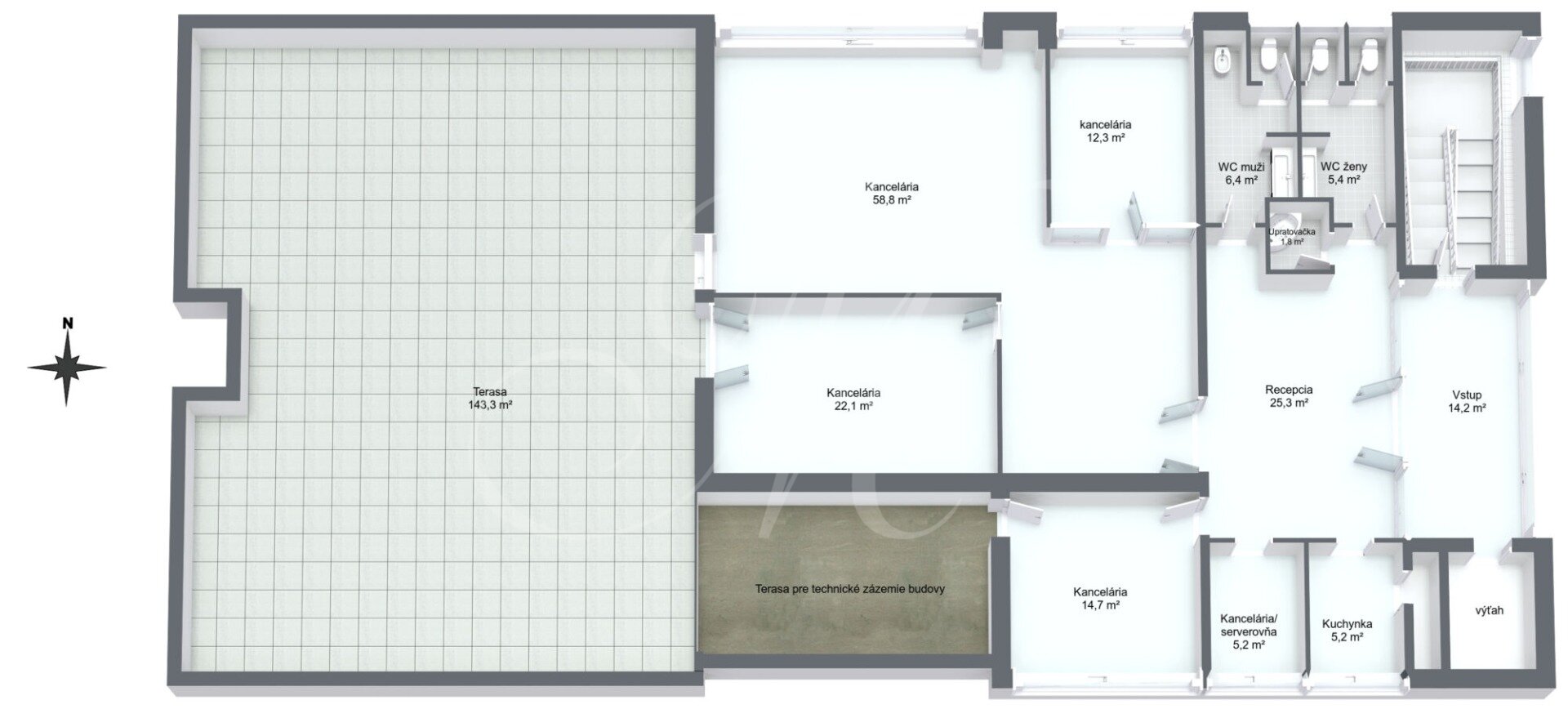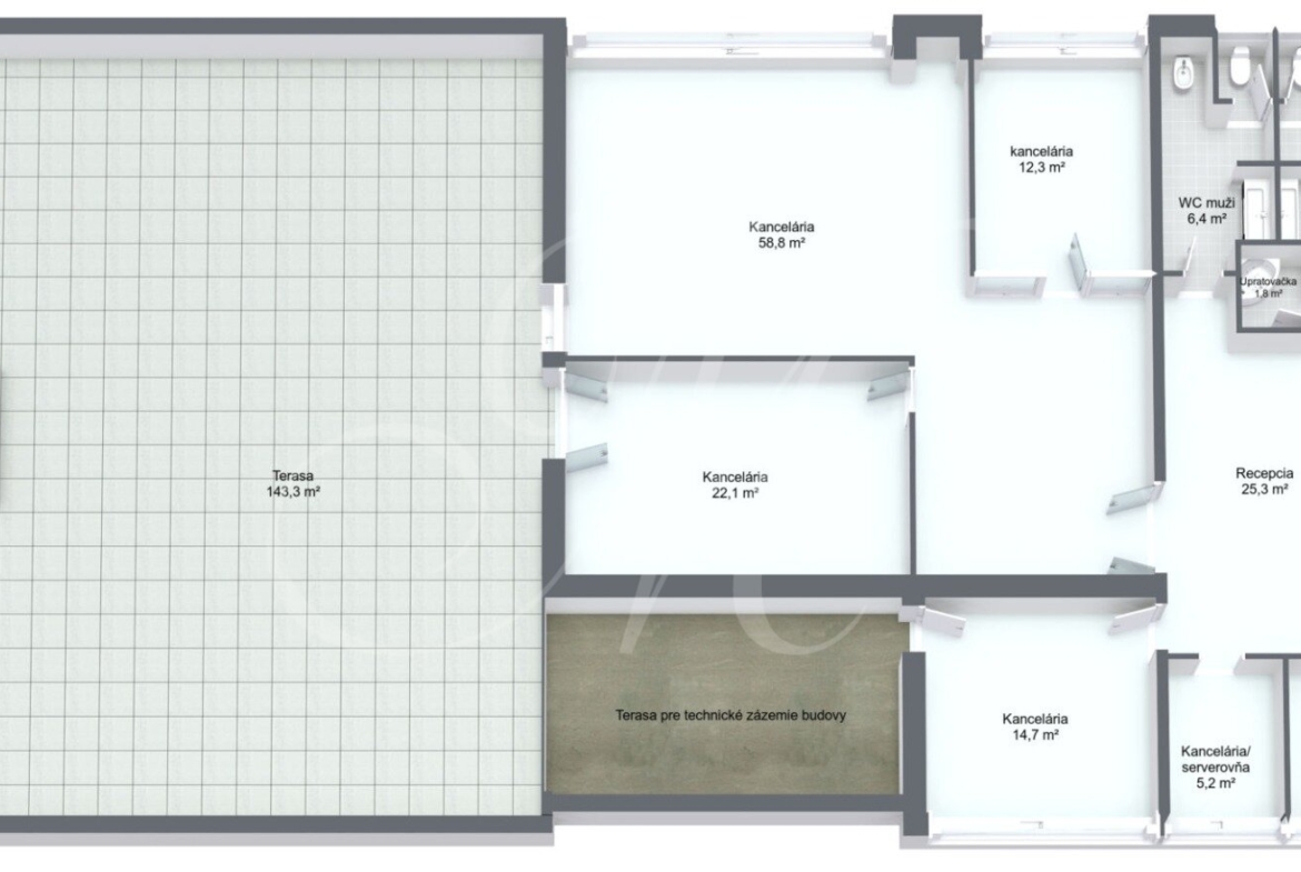 Office space with an area of ​​180 m2 for rent in Bratislava – Ružinov. Possibility of dividing into smaller units.