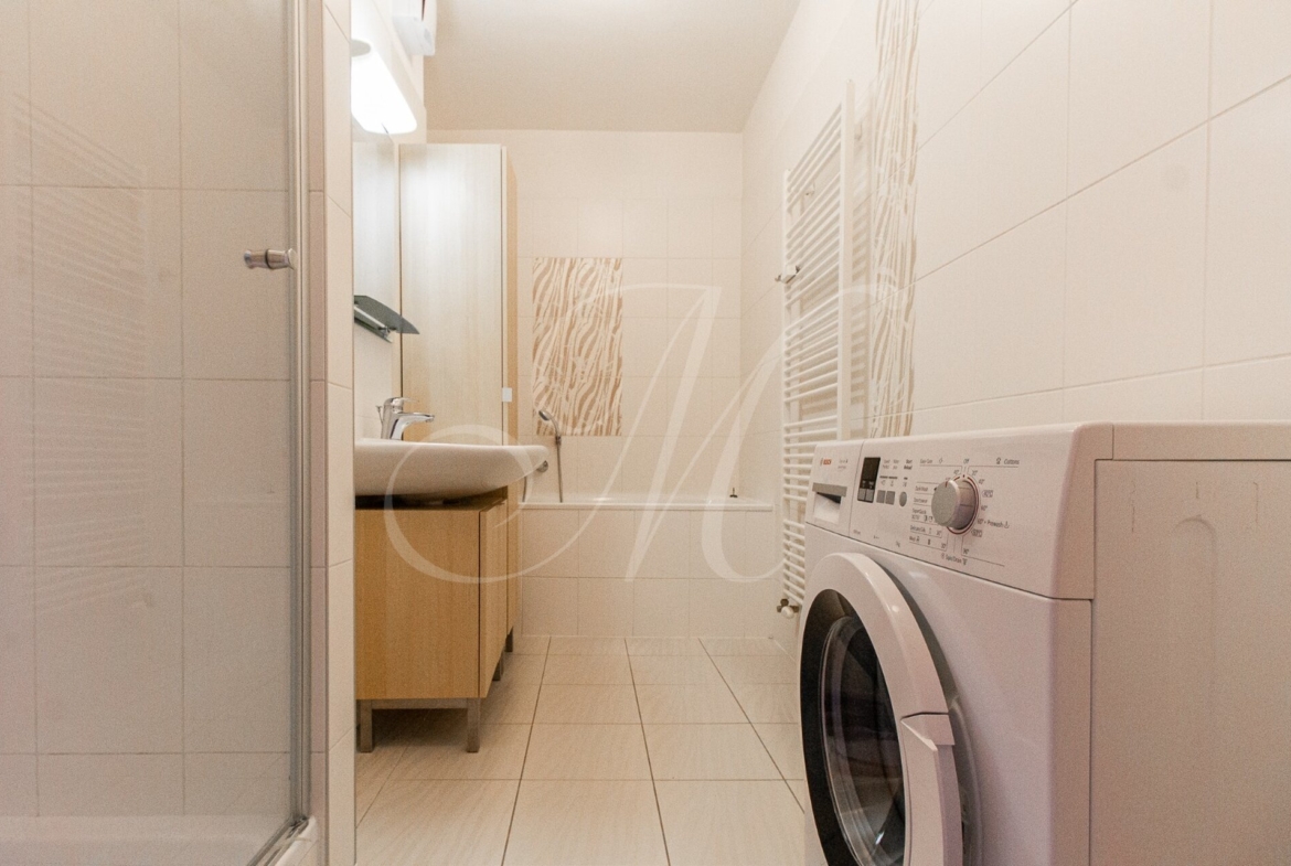The apartment is located in a new building in Ružinov. There are complete civic amenities in the area, including cafes, shops, banks and public transport stops with good access to the city center and other parts of Bratislava.