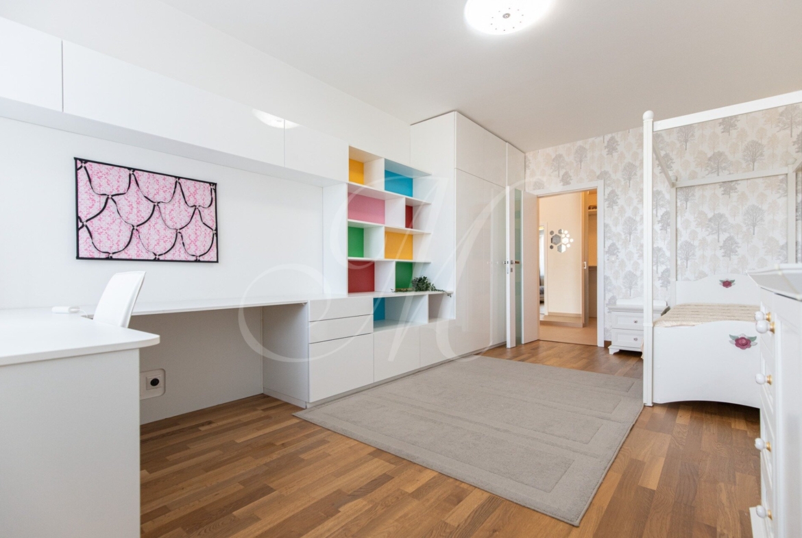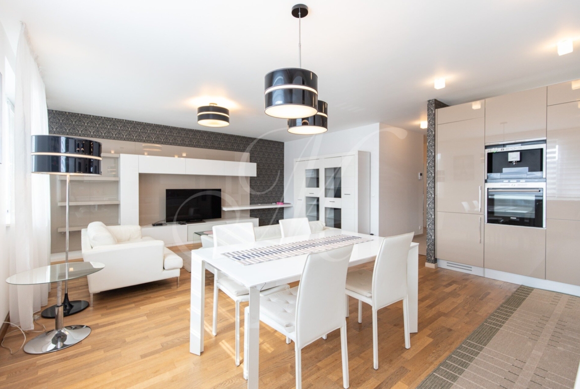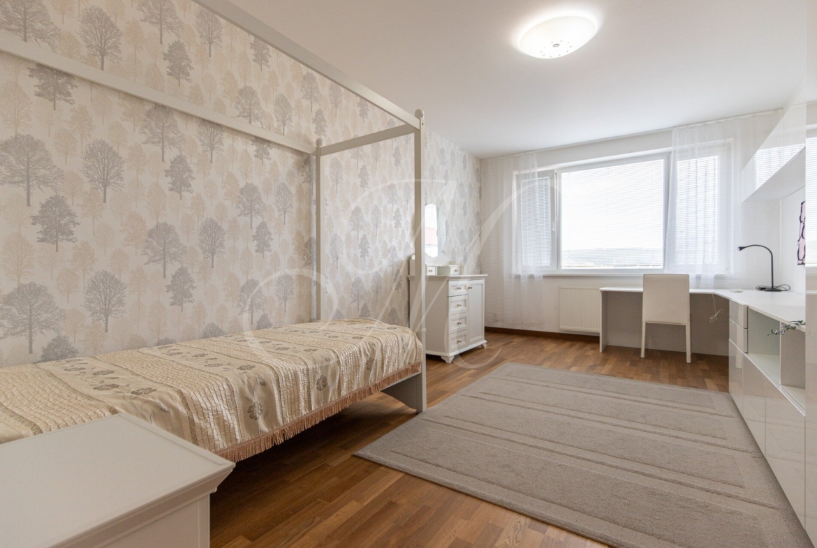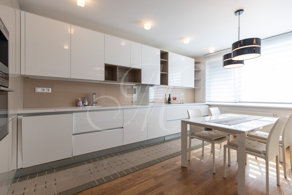 For rent: a high-standard 2-bedroom apartment in the Dom Rustika project, located in the center of Dúbravka. The apartment has a floor area of 110 m², is situated on the 7th floor, and features two balconies and a private garage parking space. It is fully furnished and available immediately.