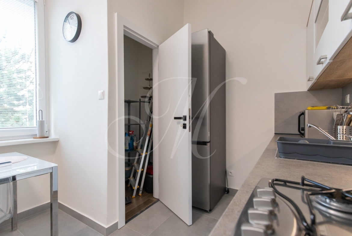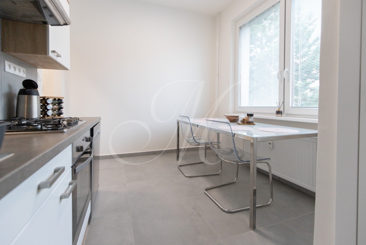 The location offers quiet living surrounded by greenery with good access to the city center. The Bratislava-Východné train station is within walking distance, along with opportunities for outdoor activities.