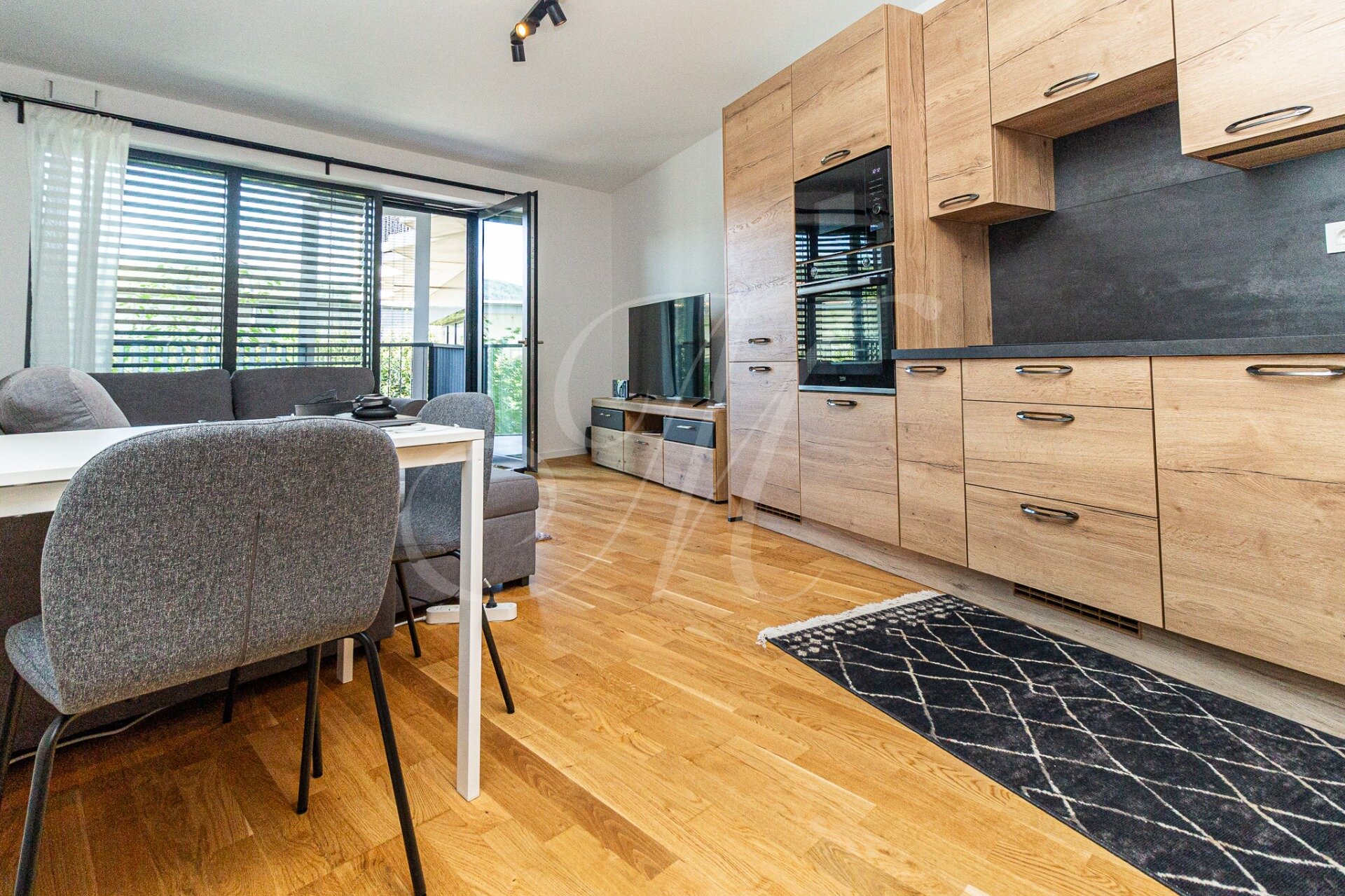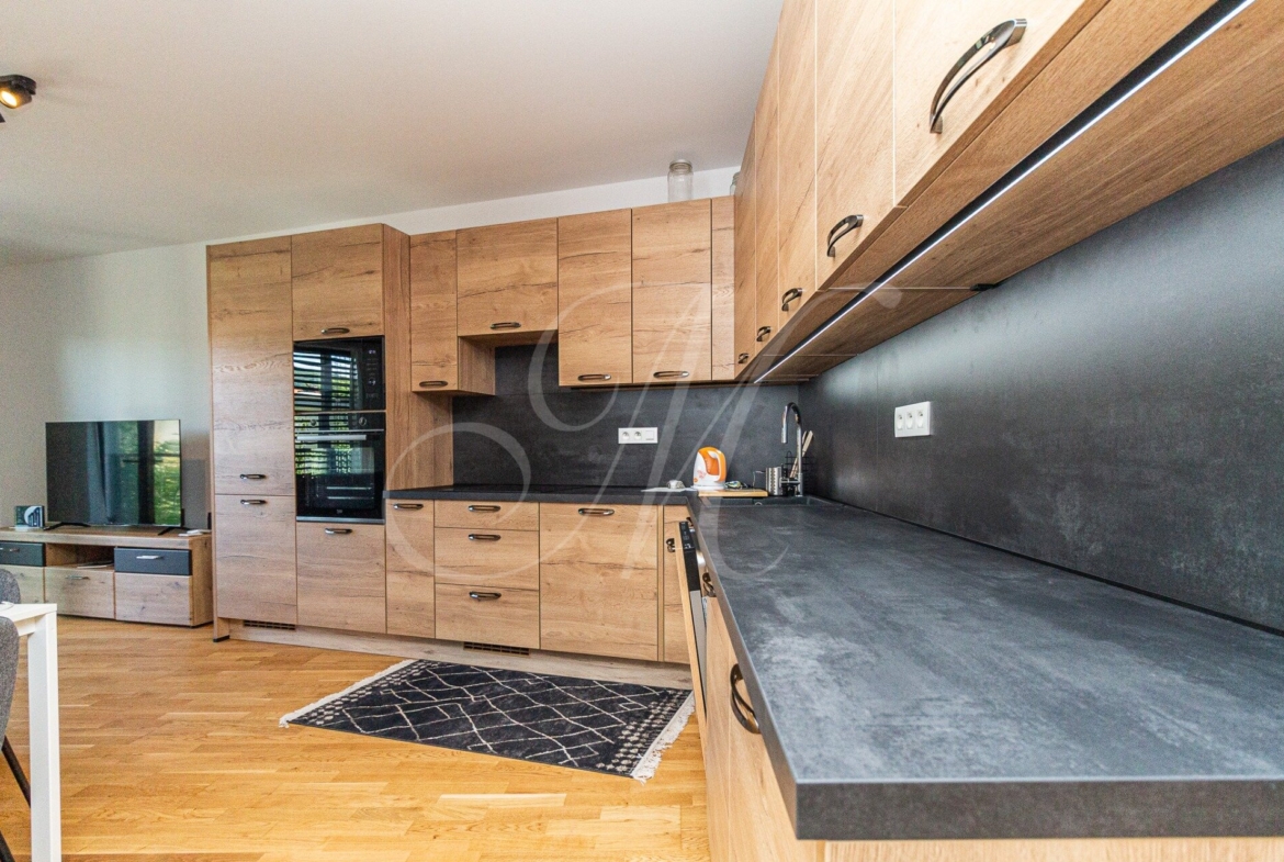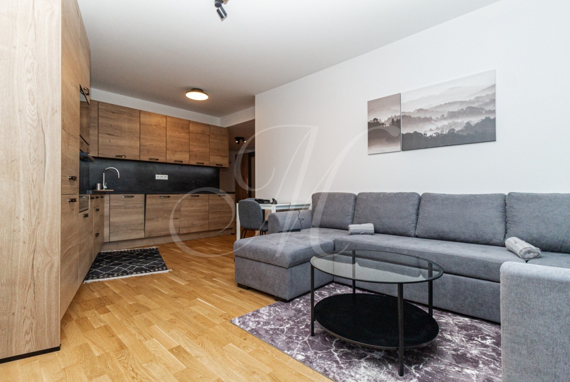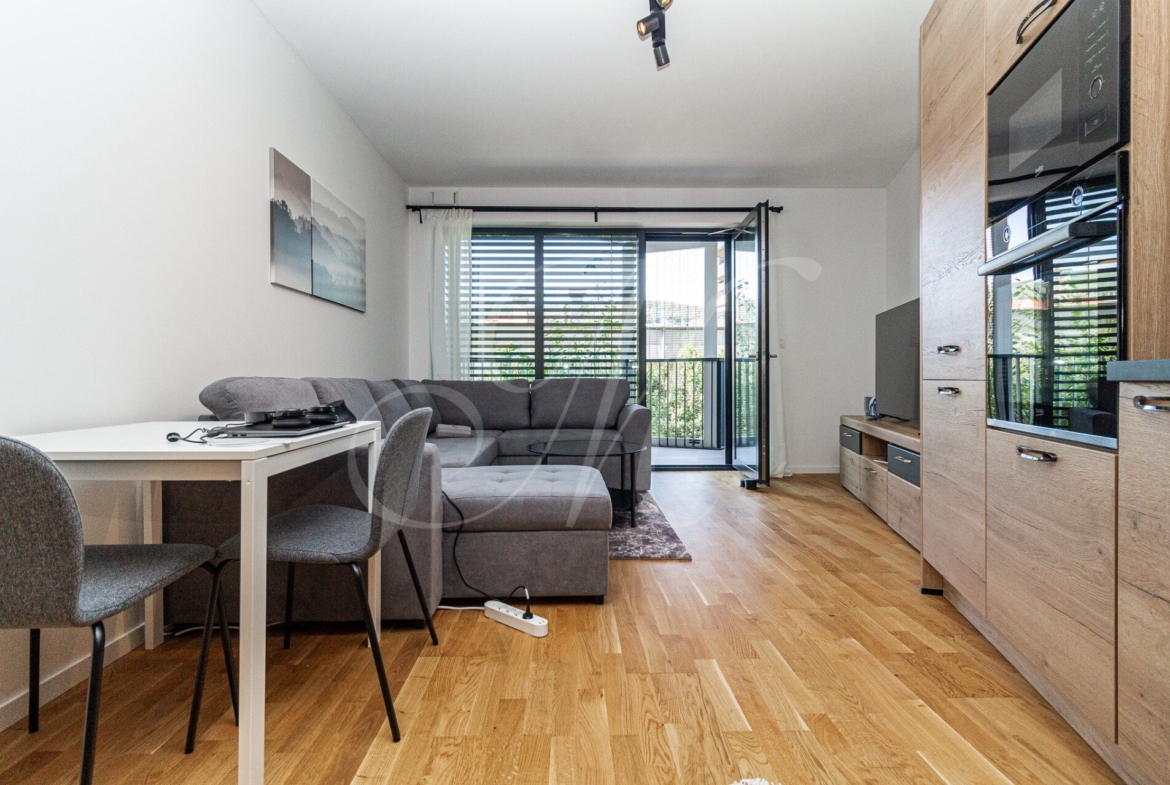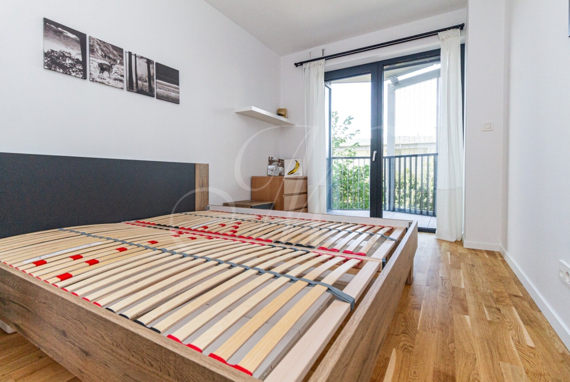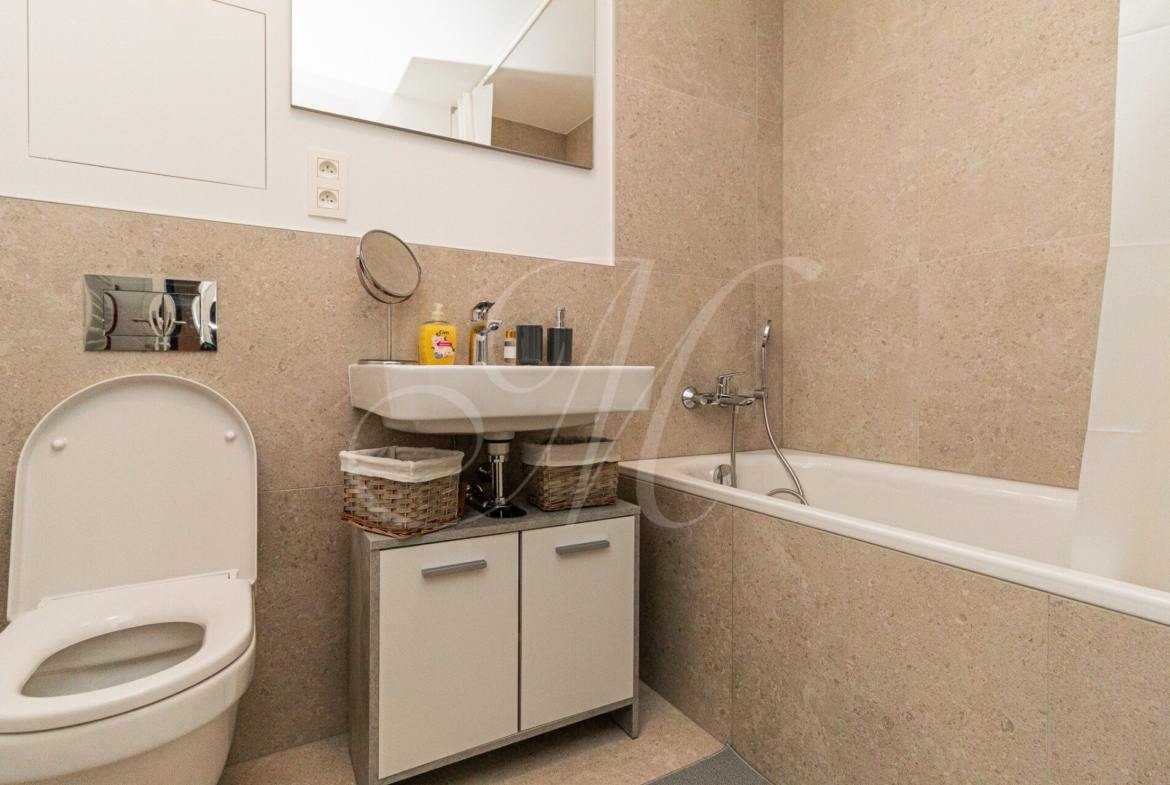 The apartment is located in a location that provides excellent accessibility, complete civic amenities, and unlimited space for spending free time in nature, which creates ideal conditions for quality urban living. The complex offers 14,000 m2 of quality public space not only for the residents of the GUTHAUS project, an outdoor playground and a 500 m long walking trail.