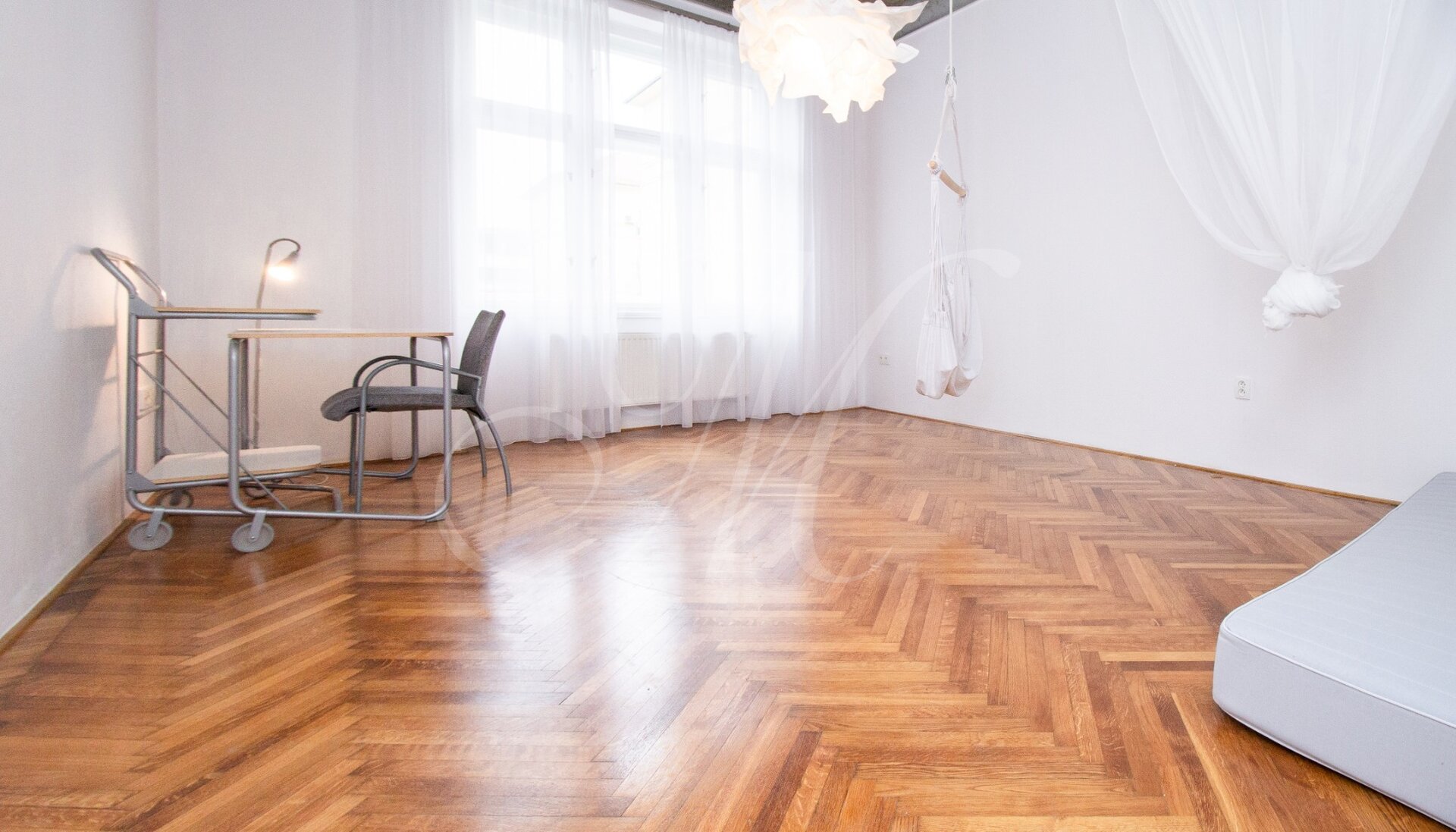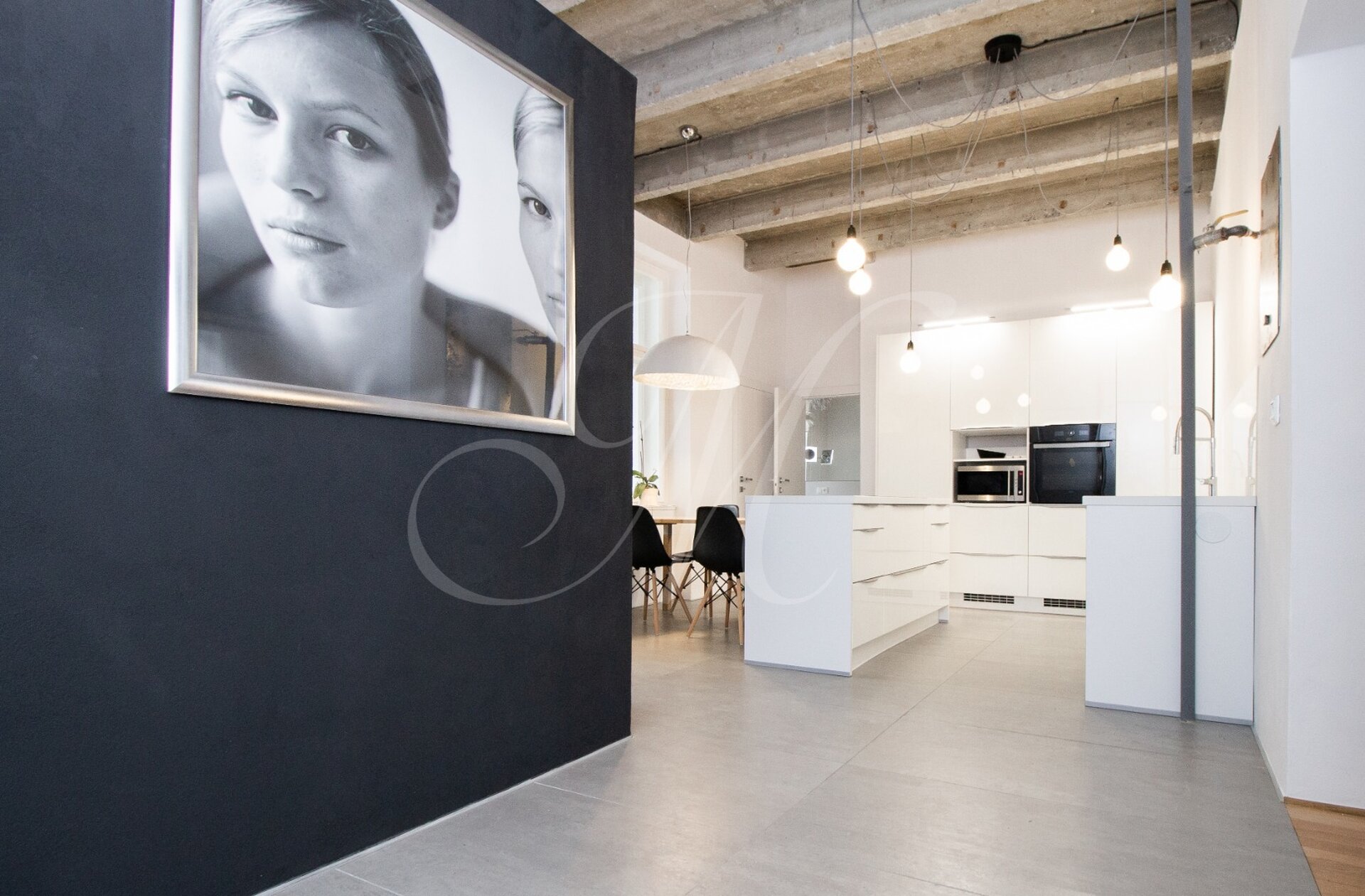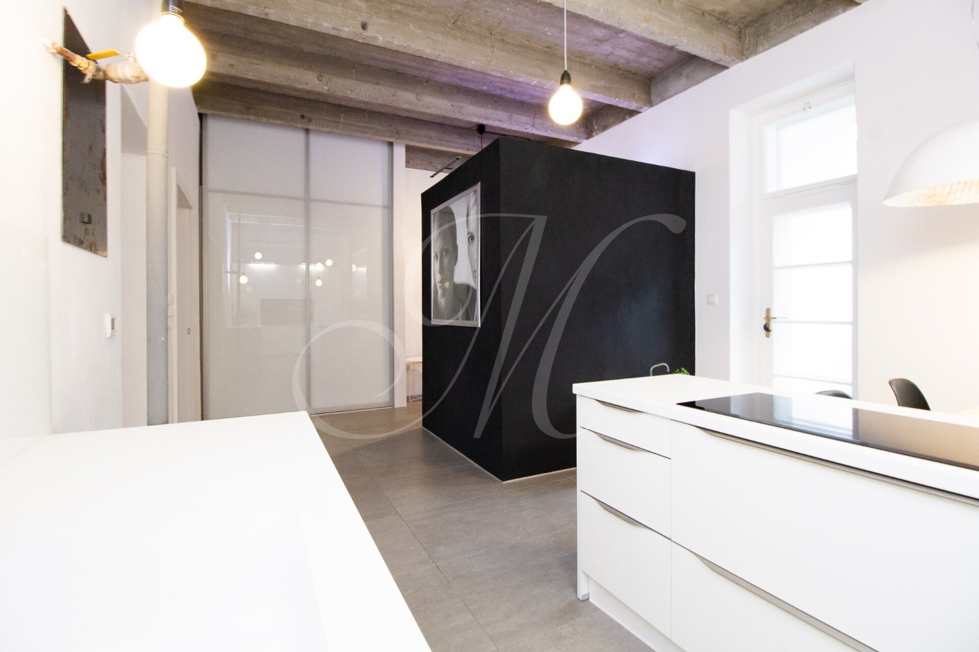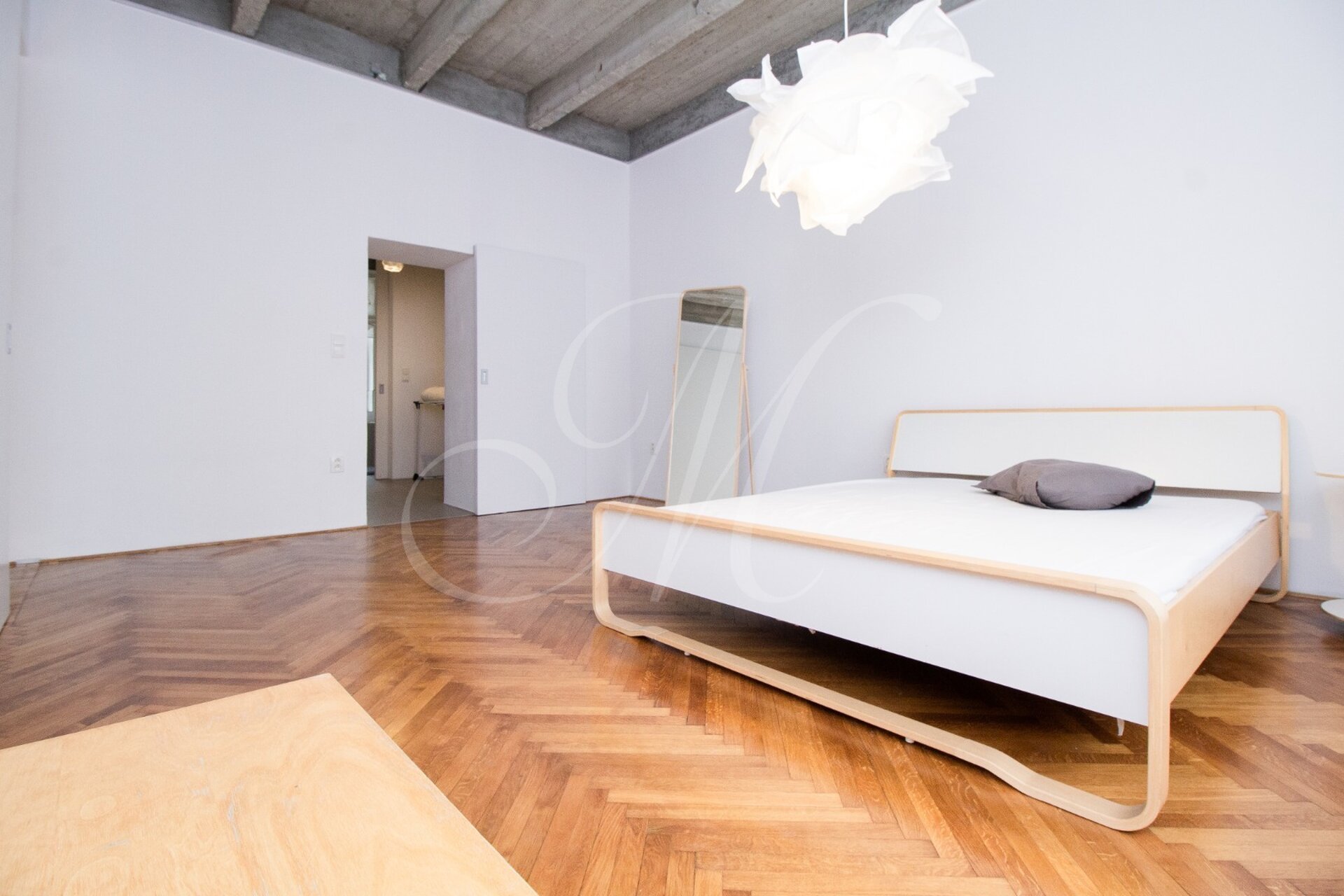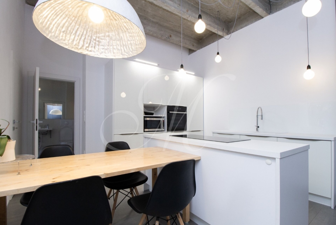 Luxurious newly renovated 2 bedroom apartment with balcony conveniently located in the city center. Spacious and sunny with specific and unique design. Unique concrete high ceilings make this apartment very special. Fully furnished with modern furniture, hardwood floors, high ceilings, spacious brand new kitchen equipped with built-in appliances, walk-in closet, 2 bathrooms ( 1 with tub , 2nd one with shower ), floor heating. Building with elevator, cellar.
