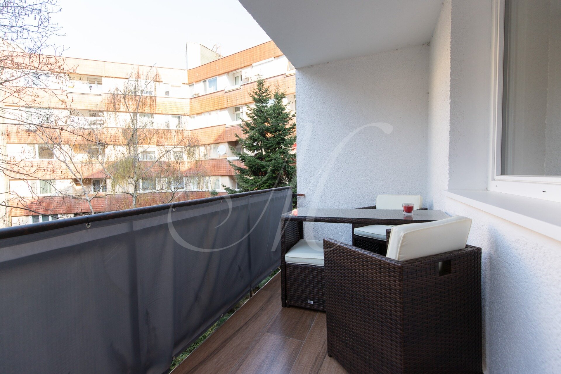 The apartment features a spacious loggia providing a pleasant outdoor space.