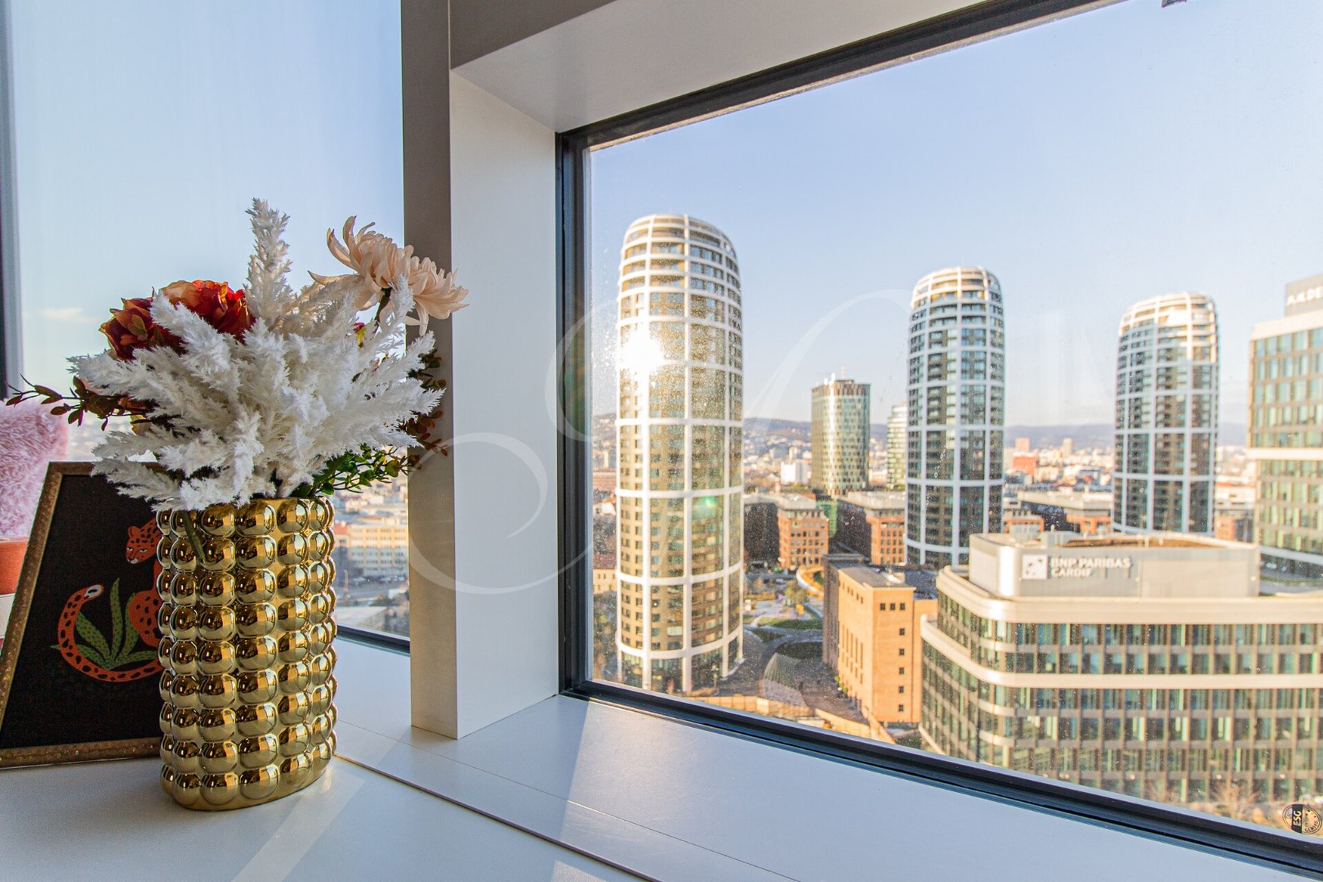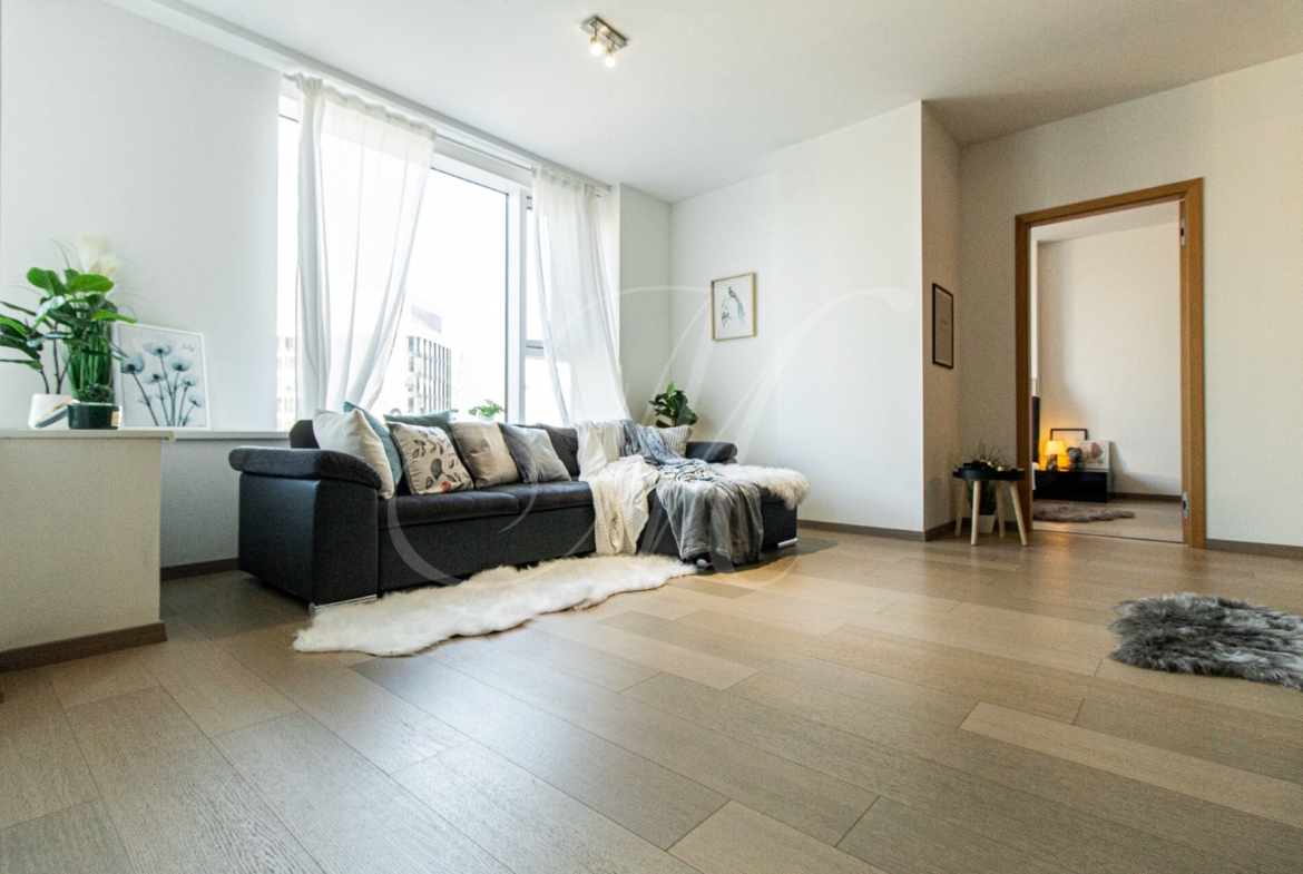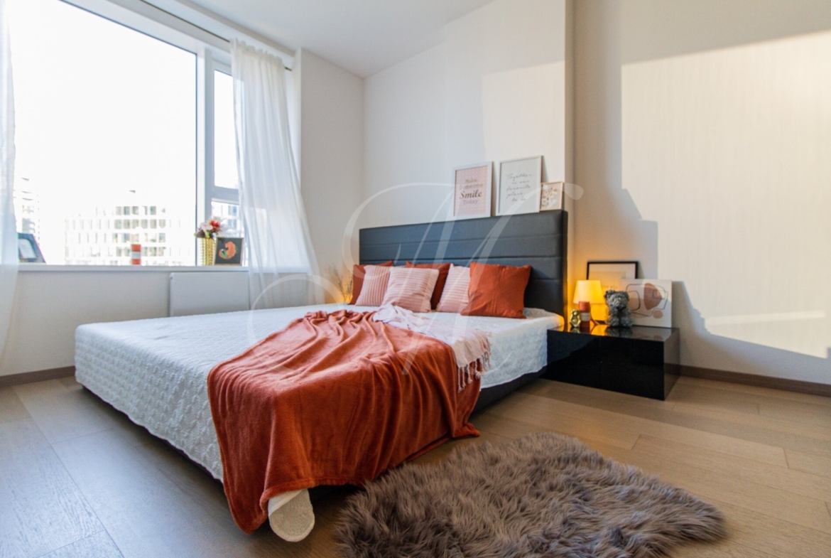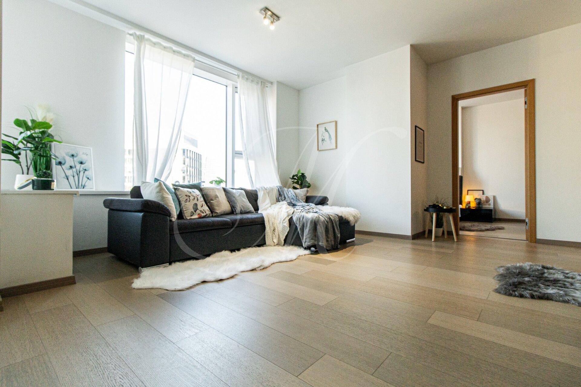 We offer for SALE a beautiful 2-room apartment in a new building in PANORAMA CITY. The apartment is located on the 17th floor in a 33-story new building with four high-speed elevators. The building is 112 meters high and offers a unique panoramic view of the center of the Old Town. The apartment with an area of 56.08m2 consists of a loggia (2.49m2), a kitchen, a living room, a double bedroom, a bathroom with a bathtub and a toilet, and an entrance hall. It also includes a cellar (2.36m2) located on the 2nd floor.The costs associated with the use of the property amount to €130/month.