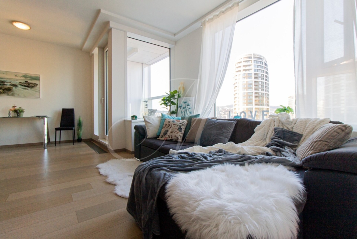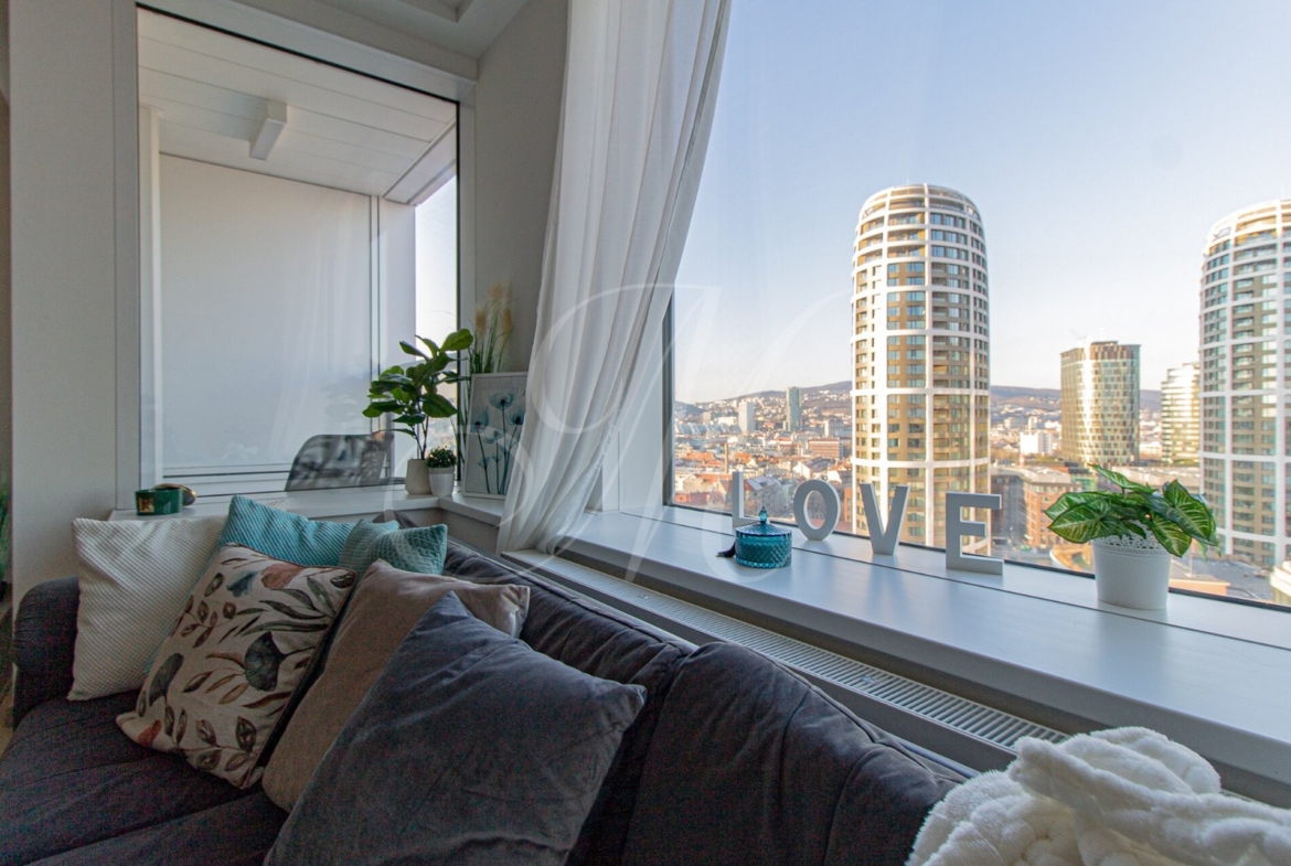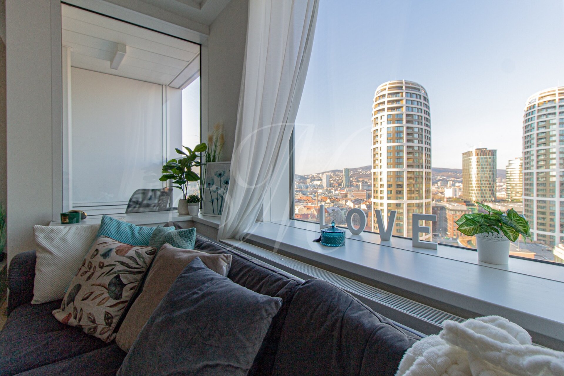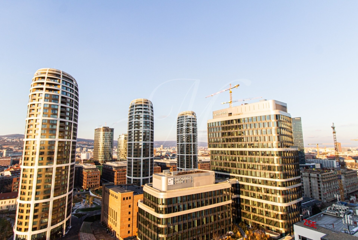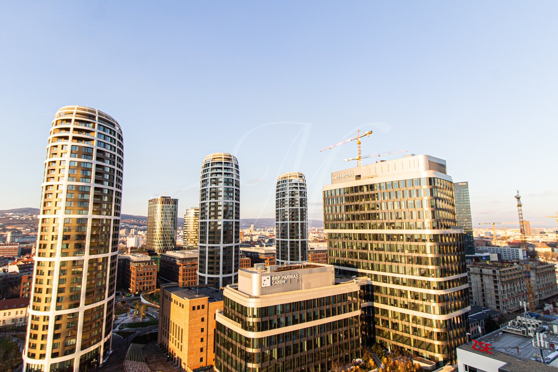 The apartment is located in Bratislava (part of the Old Town) on Landererova Street in the PANORAMA CITY residential building in a lucrative location, which has complete civic amenities, there are groceries (yeme) directly under the apartment, the EUROVEA shopping center is located a few minutes’ walk away, and a little further is it is also possible to visit the NIVY shopping center and bus station. There are many restaurants, pharmacies, grocery stores and cafes in this location. Access is possible directly to the historic center or to any other part of Bratislava by car, public transport or tram.