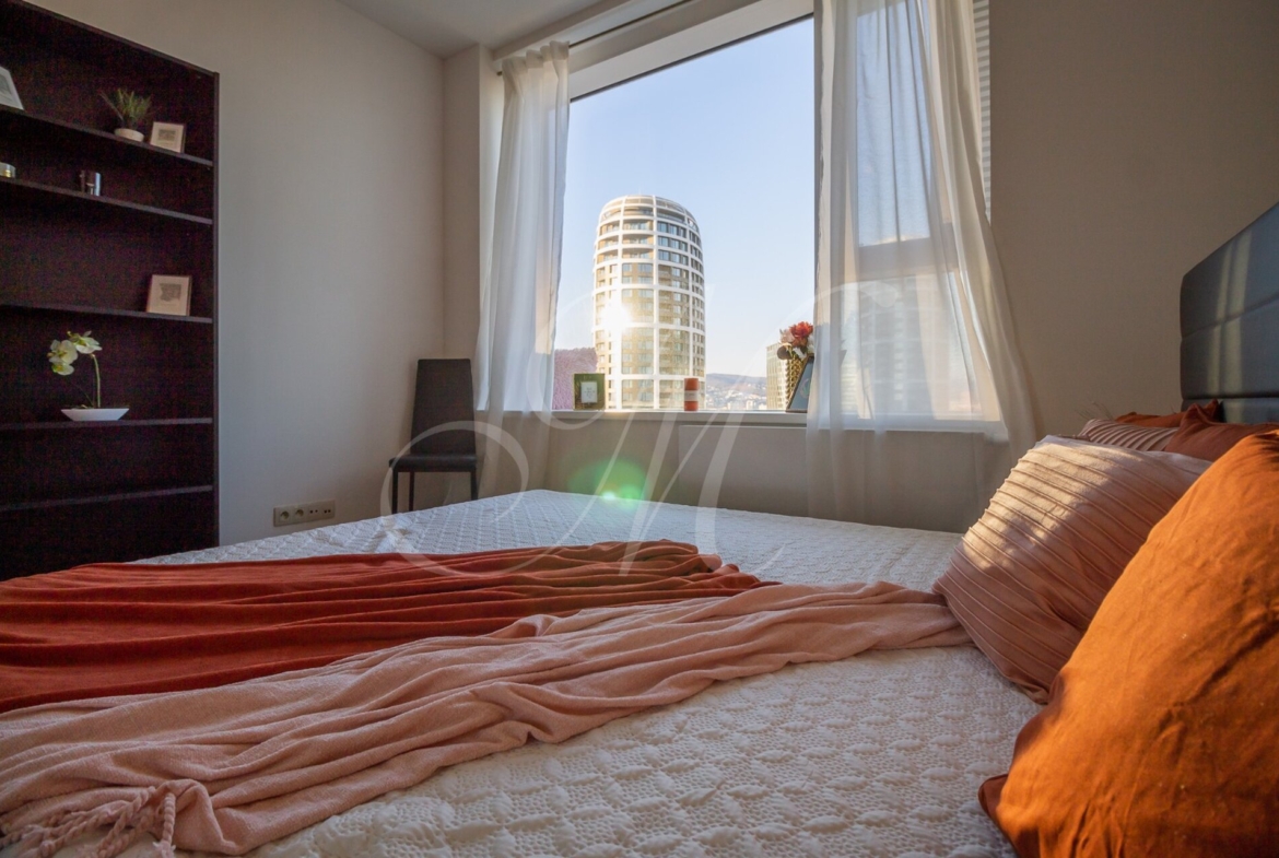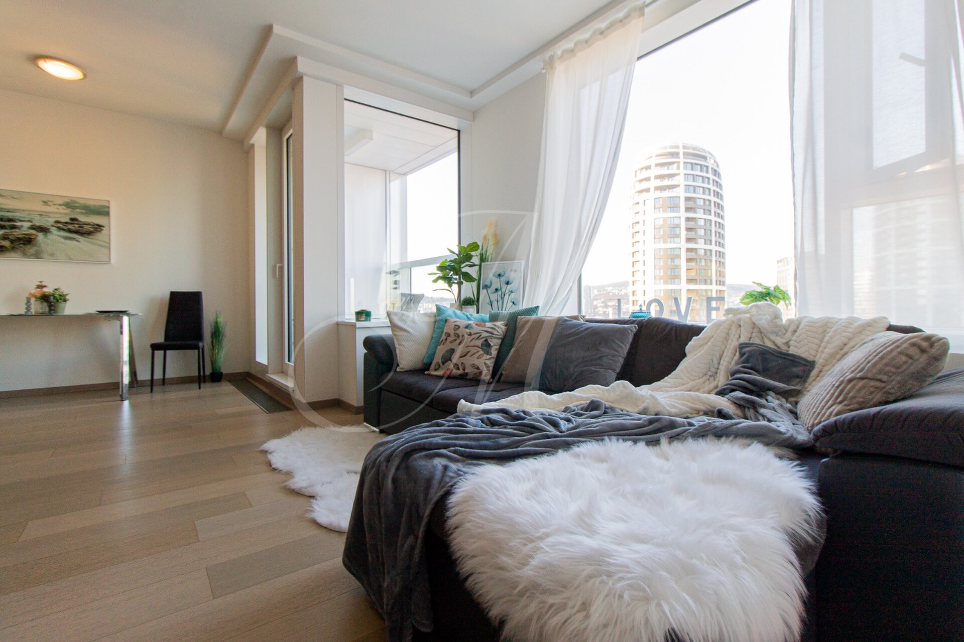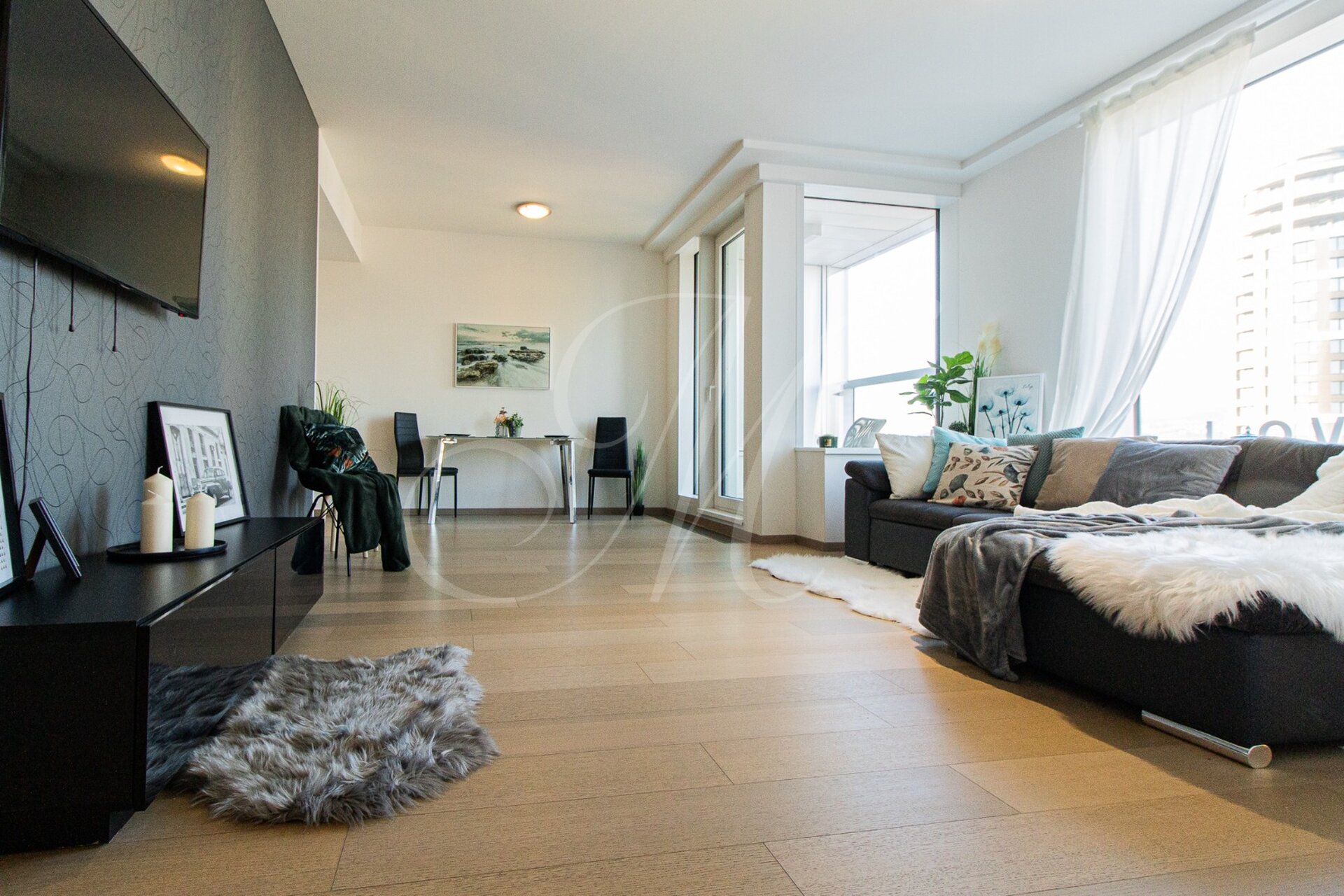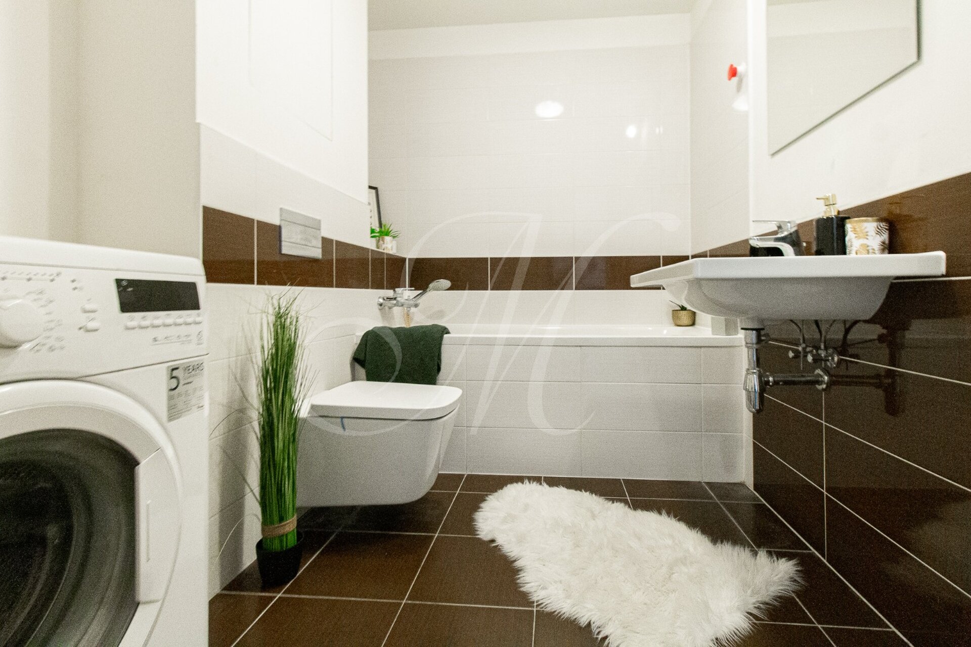 The apartment is located in Bratislava (part of the Old Town) on Landererova Street in the PANORAMA CITY residential building in a lucrative location, which has complete civic amenities, there are groceries (yeme) directly under the apartment, the EUROVEA shopping center is located a few minutes’ walk away, and a little further is it is also possible to visit the NIVY shopping center and bus station. There are many restaurants, pharmacies, grocery stores and cafes in this location. Access is possible directly to the historic center or to any other part of Bratislava by car, public transport or tram.