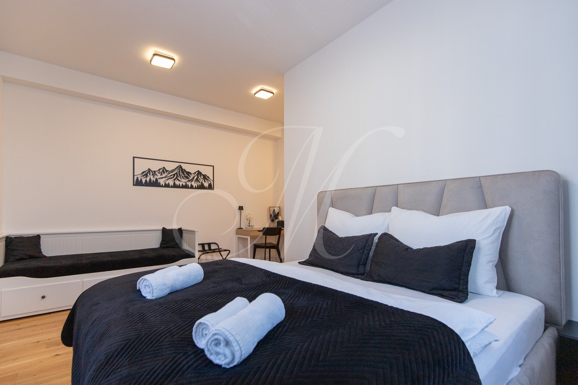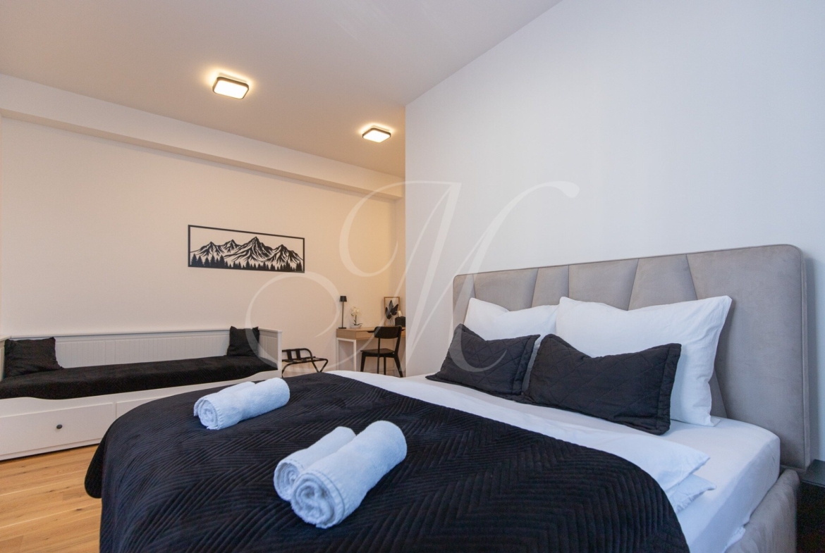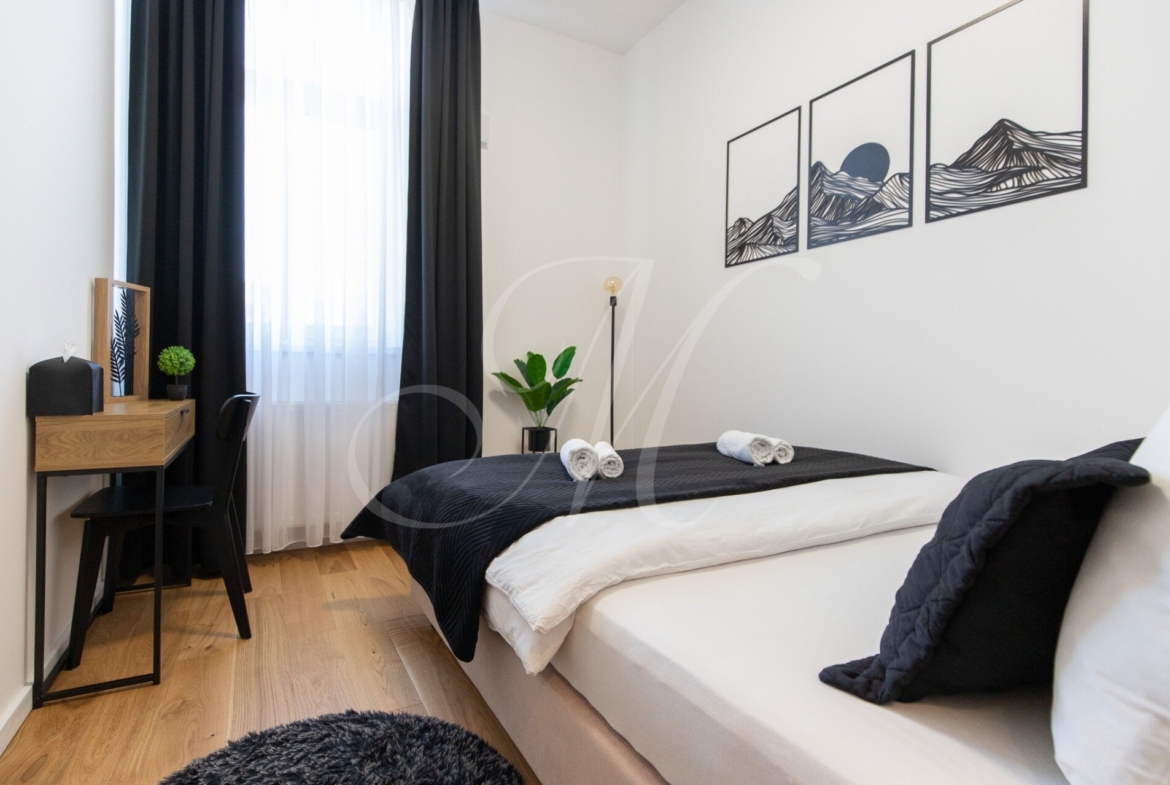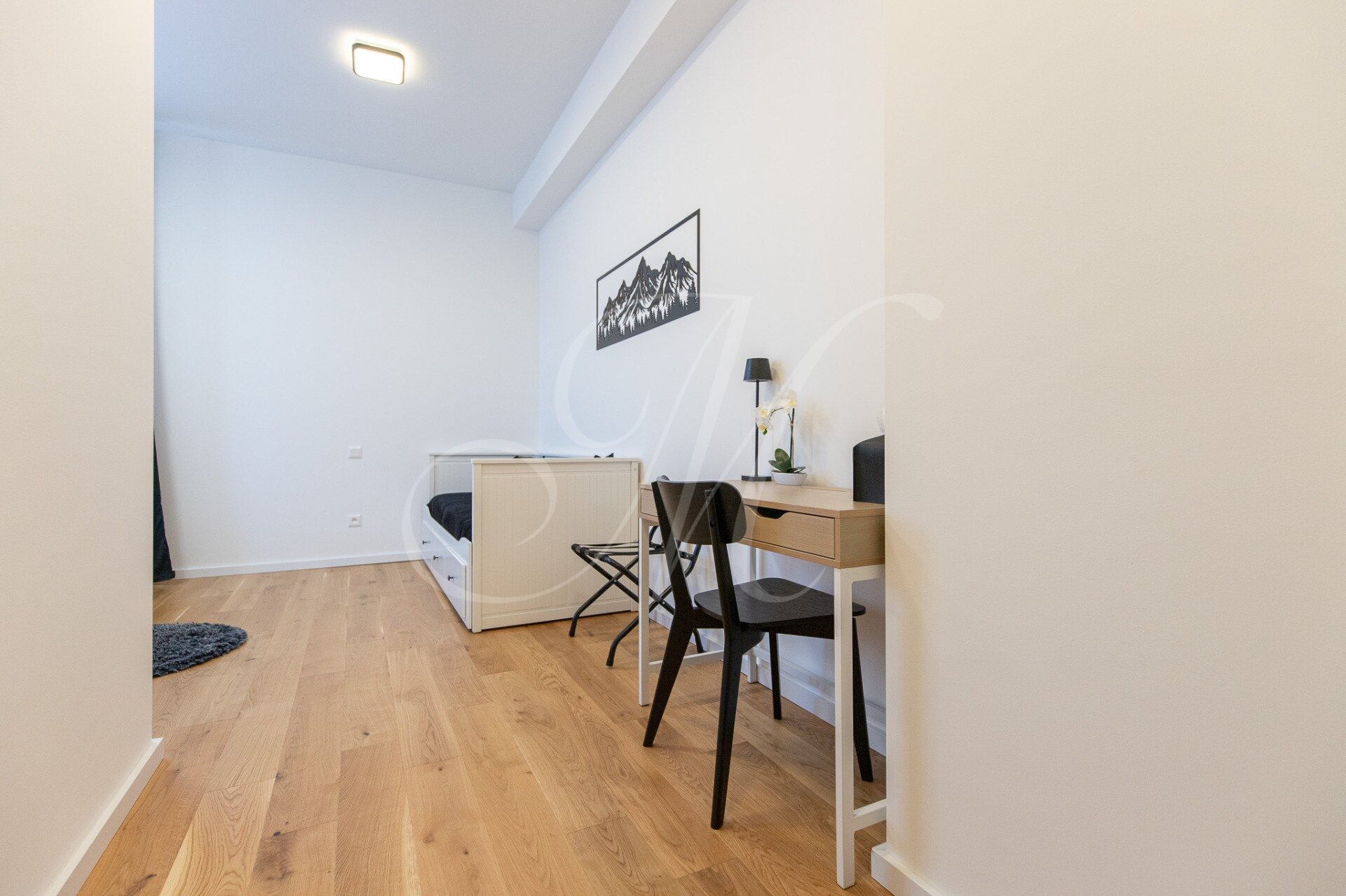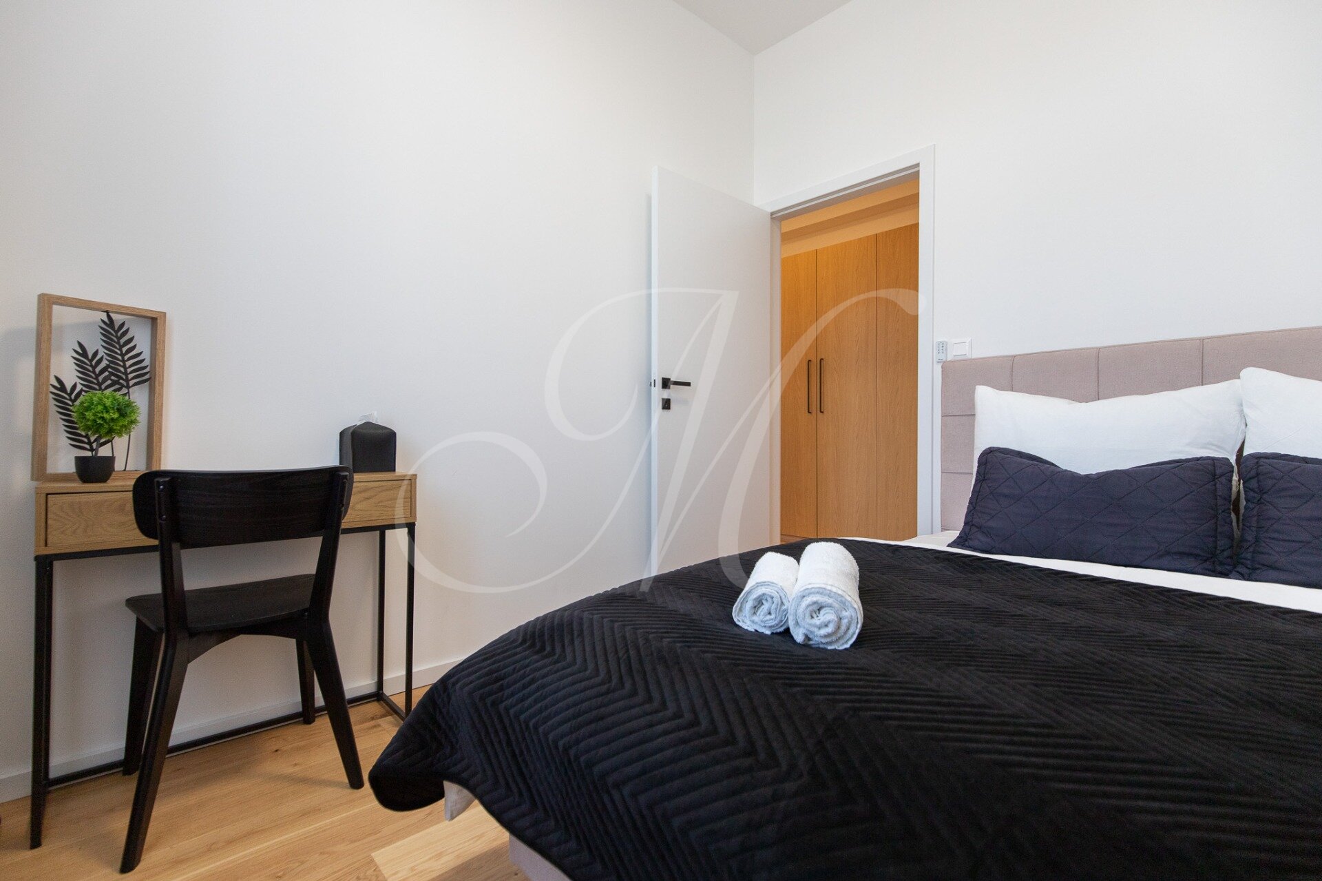 Byt sa prenajíma kompletne zariadený a disponuje klimatizáciou, podlahovým kúrením, vstavanými skriňami a zabezpečovacím systémom.