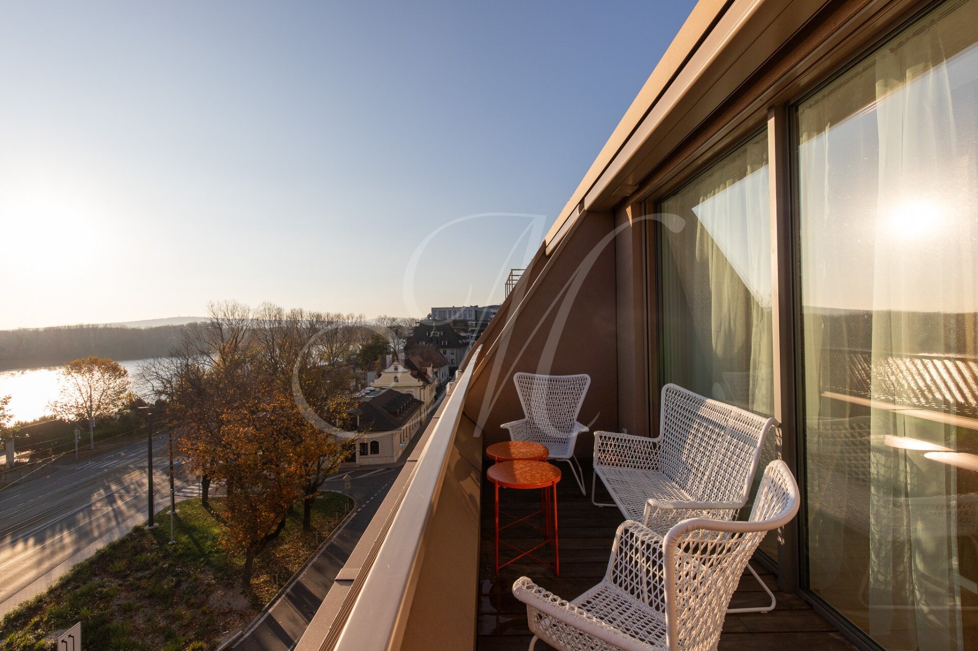 Z južne orientovanej terasy s výhľadom na Dunaj a historickú zástavbu si možno vychutnať slnko takmer počas celého roka.