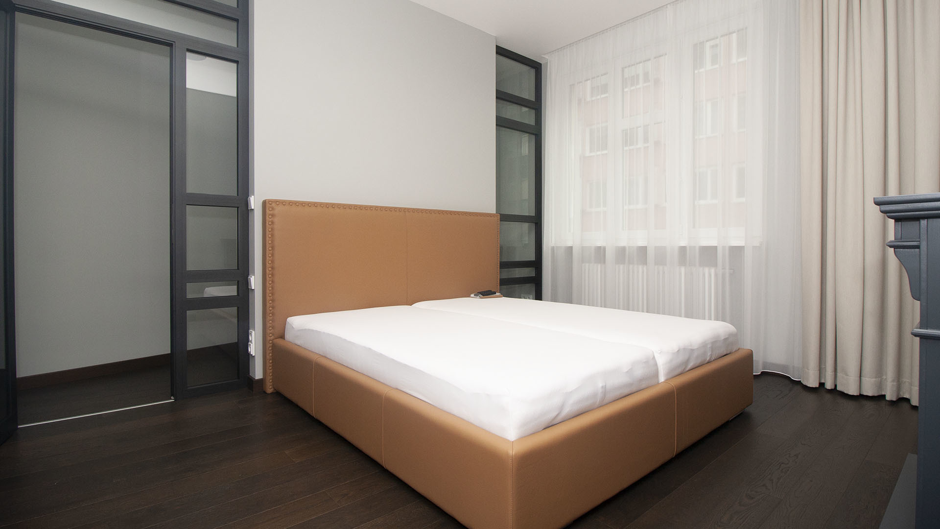 Nádherne prerobený nadštandardný 3-izbový byt v centre mesta je situovaný na 2. poschodí (5). Pozostáva zo vstupnej miestnosti, luxusnej obývacej izby prepojenej s kuchyňou vybavenou najmodernejšími spotrebičmi (chladnička, mraznička, el. rúra, sporák, mikrovlnná rúra), dvoch spální so samostatnými šatníkmi, kúpeľne s vaňou a sprchovým kútom a samostatnej toalety.