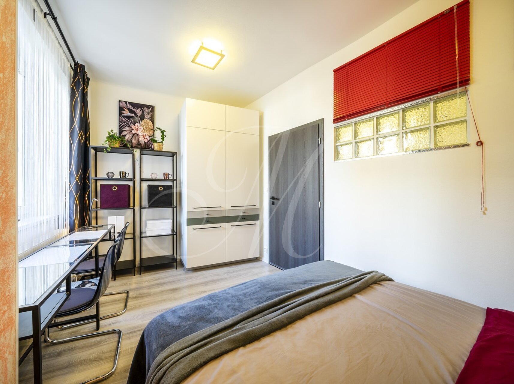 Vstup do bytu je priamo do jeho dennej časti – obývacia izba s balkónom, moderne zariadená kuchyňa s vybavením (umývačka riadu, mikrovlnná rúra, riady) a jedáleň. V obývacej časti sa nachádza rozkladací gauč, popri vstupu do spálne vedie vstavaná skriňa. Byt je kompletne zariadený a vybavený (práčka, vysávač, fén, obliečky, uteráky) a má vlastný kotol. Súčasťou bytu je aj klimatizácia.