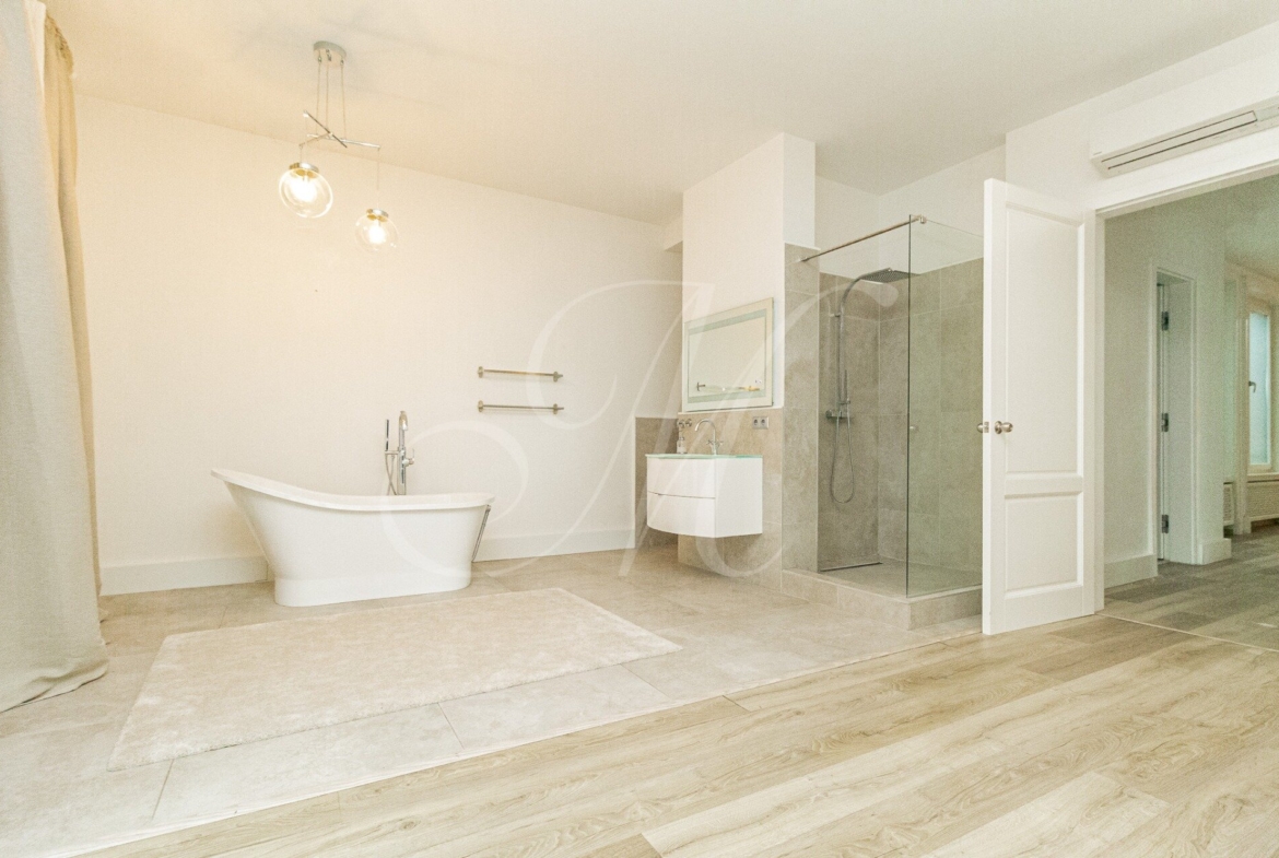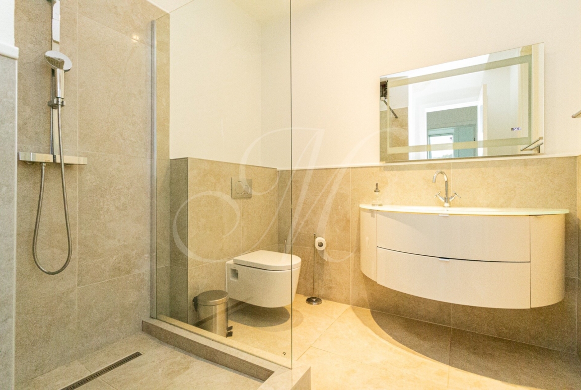 Nehnuteľnosť sa nachádza na 5.poschodí komplexu Palác Motešických s výťahom, 24/7 recepciou, kamerovým systémom a bicyklovou miestnosťou. Mezonet má 3 poschodia. Na prvom poschodí sa nachádza svetlá obývačka s luxusným nábytkom a TV spojená s jedálňou a priestrannou kuchyňou s modernými spotrebičmi (chladnička/mraznička, indukčná doska, mikrovlnka, umývacka, el.rúra), kúpeľňa s WC a technická miestnosť. Dispozícia bytu na druhom poschodí sa skladá z manželskej spálne spojenej s kúpeľnou s vaňou, sprchovým kútom a WC so vstupom na terasu, detskej izby, pracovne a kúpeľne so sprchovým kútom. Na treťom podlaží sa nachádza veľká terasa. Klimatizácia sa nachádza v každej miestnosti. K bytu prislúcha interiérový výťah.