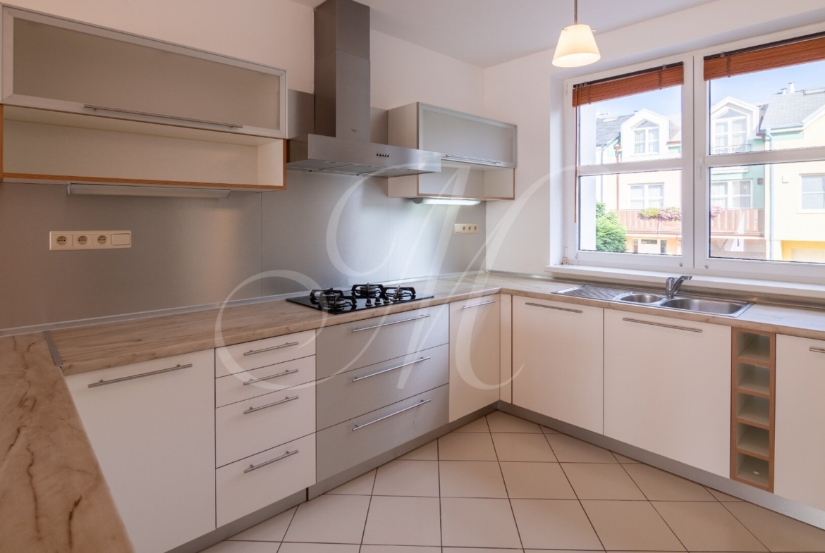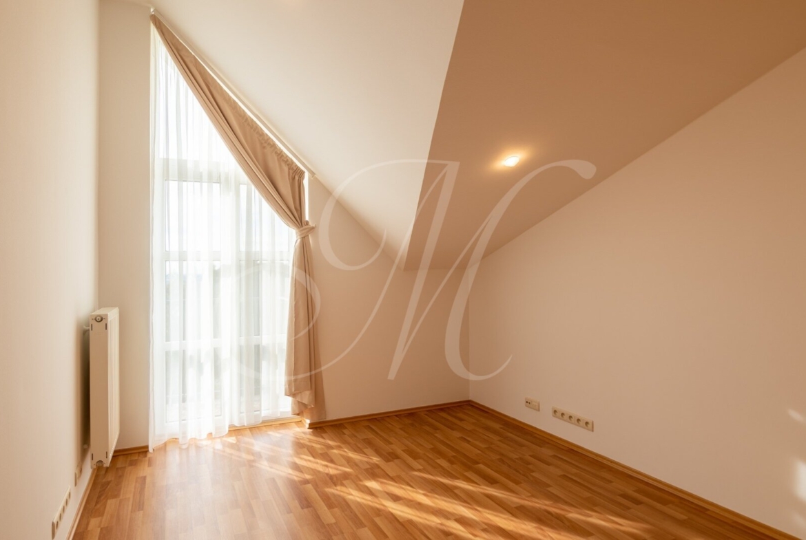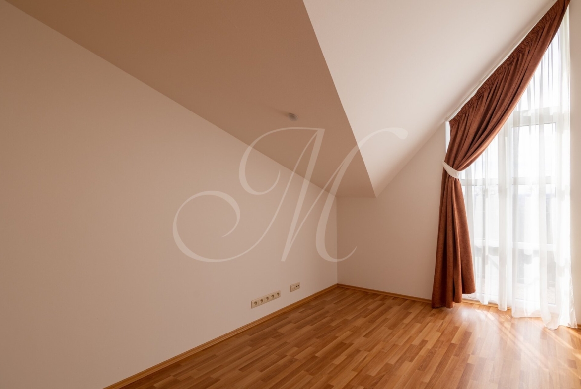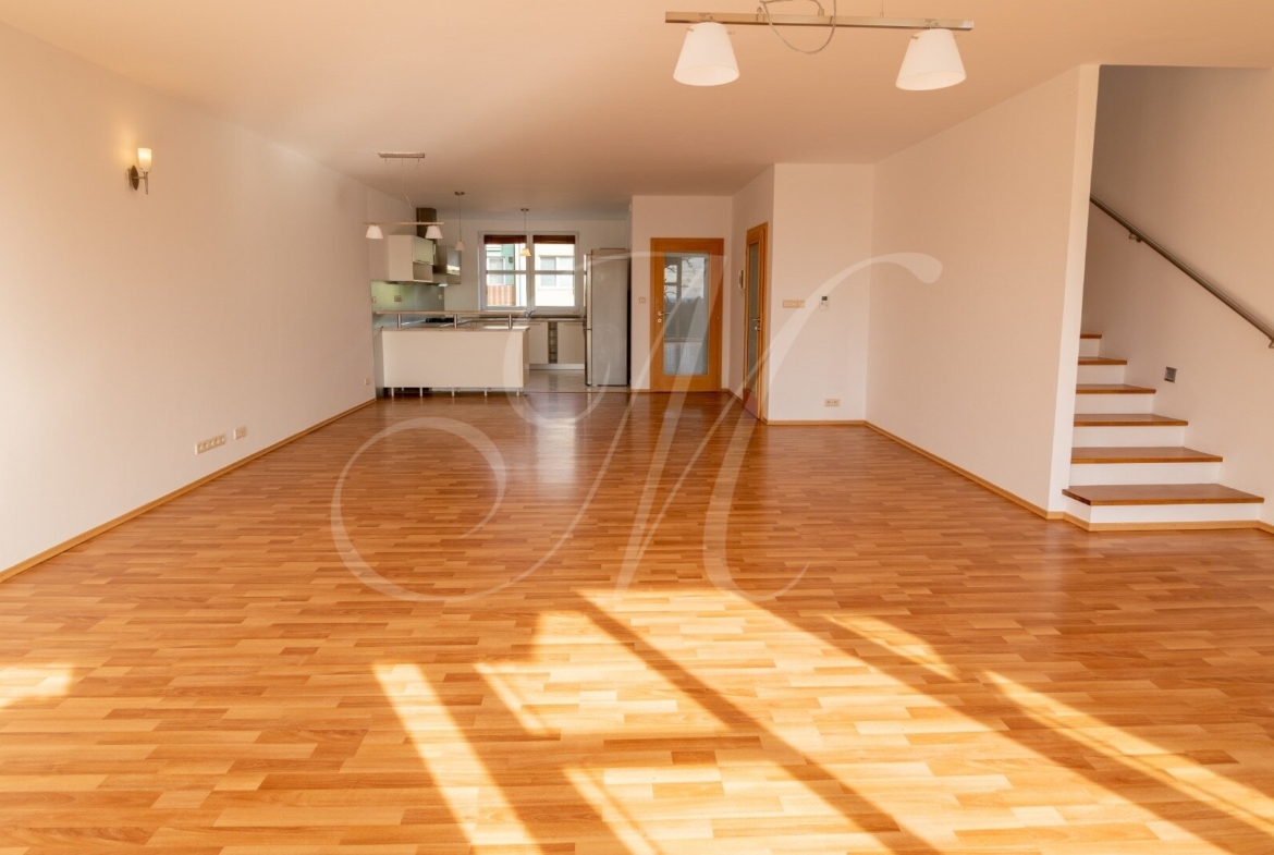 Luxusný 3-podlažný dom s terasou, dvoma balkónmi, s garážou a krásnou záhradou nachádzajúci sa na Kolibe v stráženom objekte so strážnou službou. Nádherný slnečný dom s drevenými podlahami pozostávajúci z prízemia, na ktorom je samostatná izba, kuchynský kút, kúpeľňa, technická miestnosť (práčka, sušička, kotol) a terasa so vstupom na záhradu. Na 1. poschodí sa nachádza vstupná hala plne vybavená kuchyňa, priestranná obývacia izba s jedálenskou časťou, samostatná toaleta a balkón. Na 2. poschodí sa nachádza hlavná spálňa s kúpeľňou, 2 x samostatná spálňa, kúpeľňa a balkón. Klimatizácia.