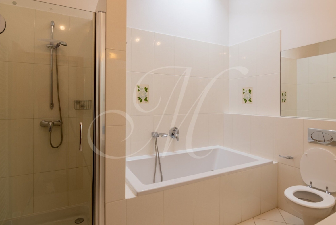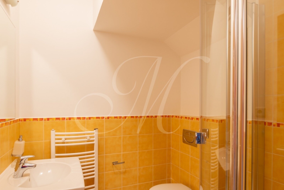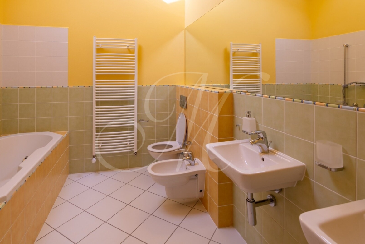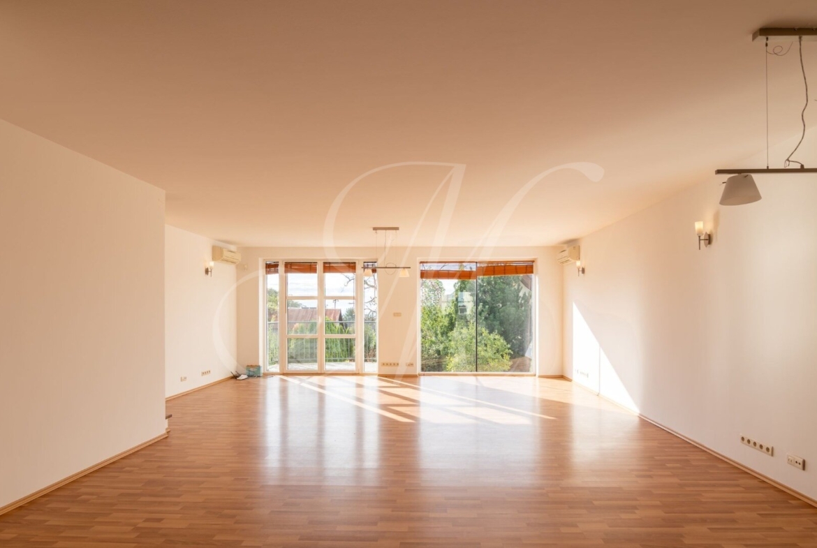 Luxusný 3-podlažný dom s terasou, dvoma balkónmi, s garážou a krásnou záhradou nachádzajúci sa na Kolibe v stráženom objekte so strážnou službou. Nádherný slnečný dom s drevenými podlahami pozostávajúci z prízemia, na ktorom je samostatná izba, kuchynský kút, kúpeľňa, technická miestnosť (práčka, sušička, kotol) a terasa so vstupom na záhradu. Na 1. poschodí sa nachádza vstupná hala plne vybavená kuchyňa, priestranná obývacia izba s jedálenskou časťou, samostatná toaleta a balkón. Na 2. poschodí sa nachádza hlavná spálňa s kúpeľňou, 2 x samostatná spálňa, kúpeľňa a balkón. Klimatizácia.