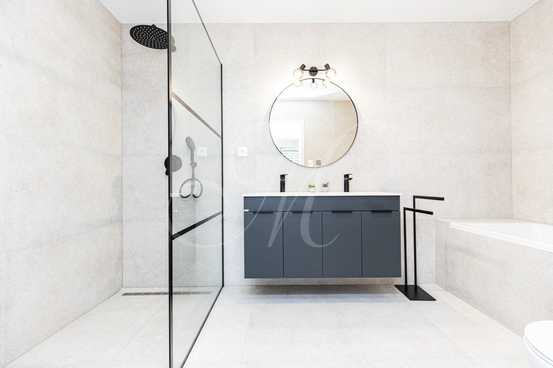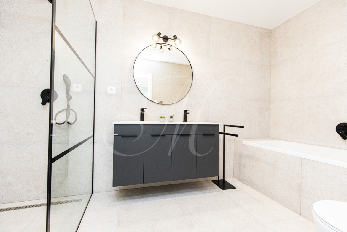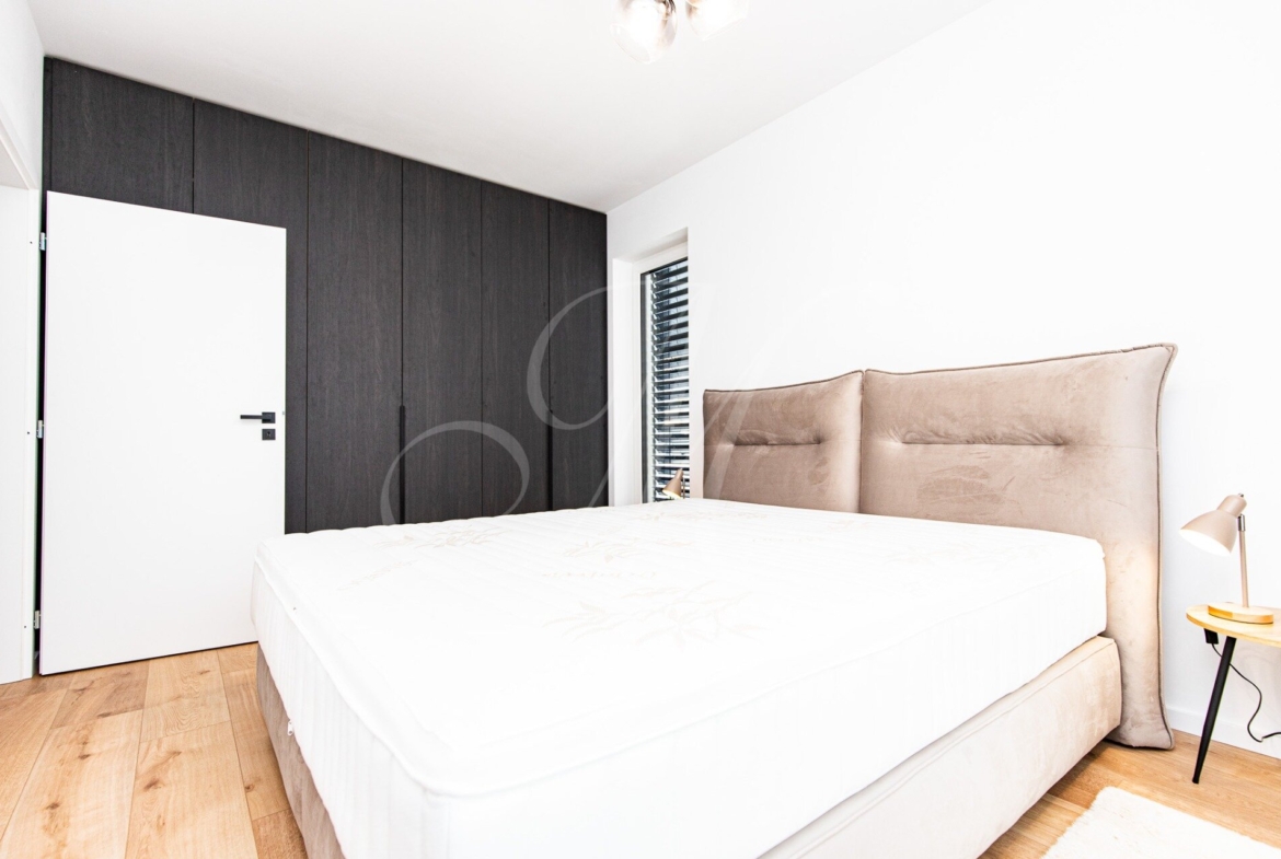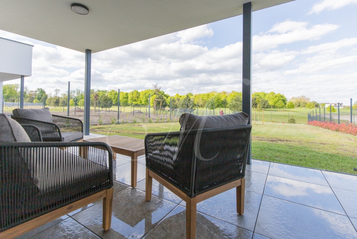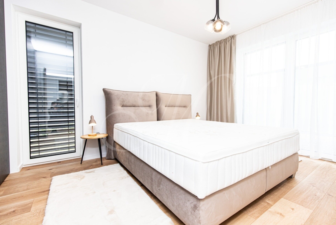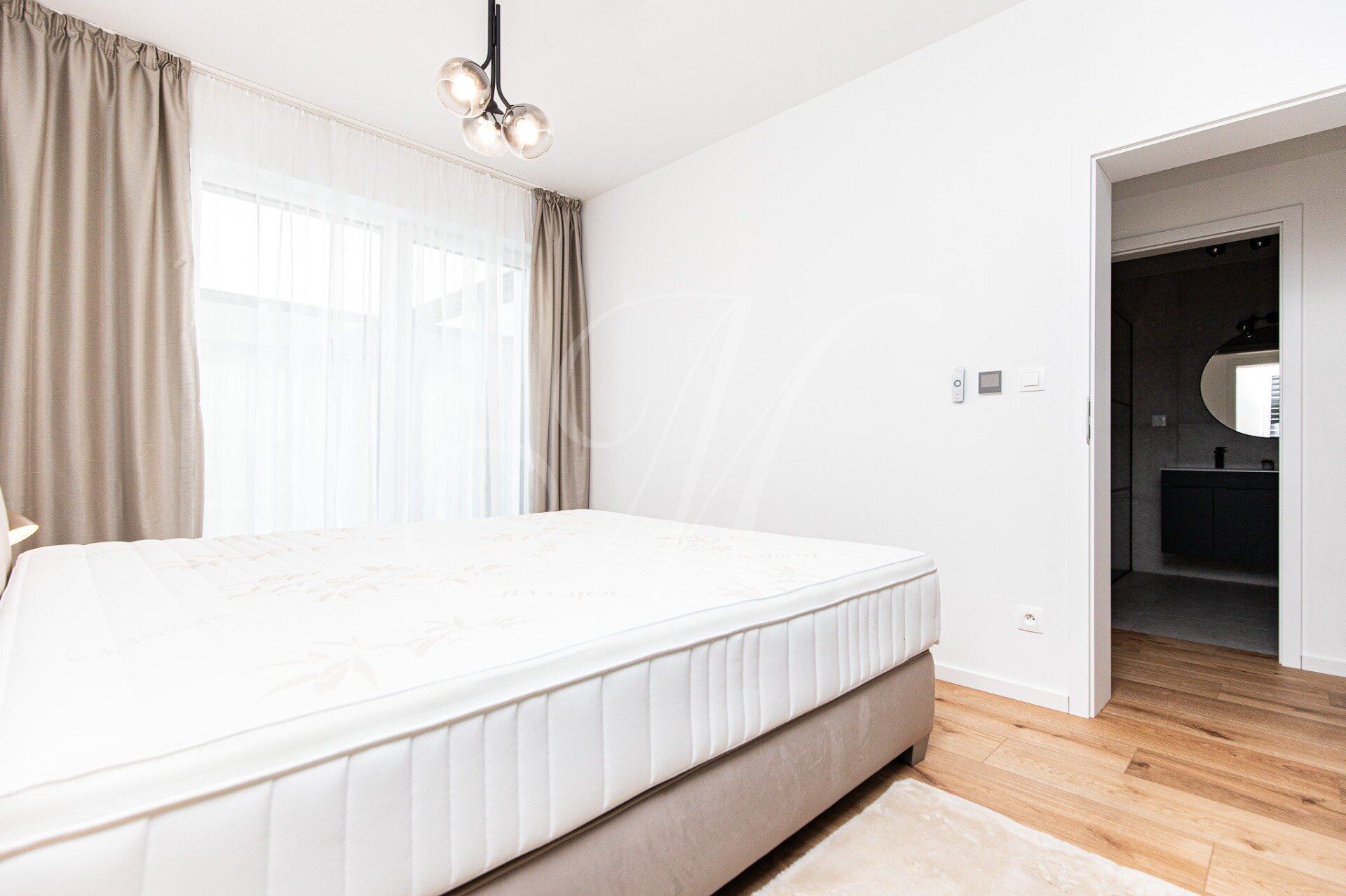 Byt disponuje klimatizáciou, elektrickým podlahovým kúrením, alarmom, exteriérovými žalúziami. Záhrada je vybavená automatickou závlahou a robotickou kosačkou. K bytu prislúchajú aj 2 parkovacie miesta a exteriérová kobka.