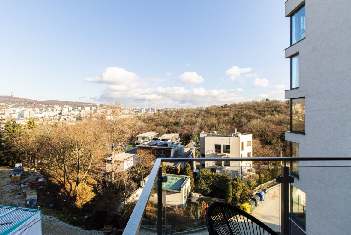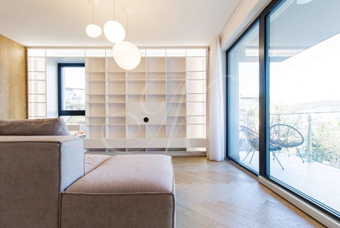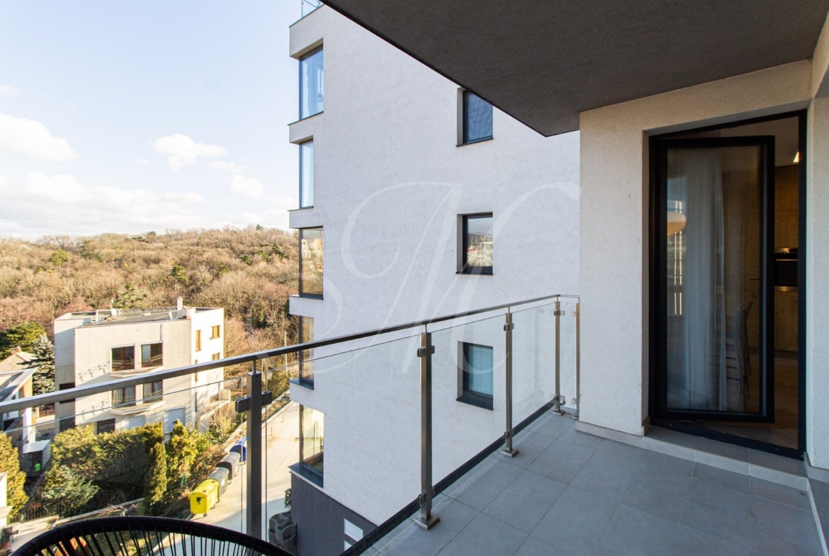 Kompletne zariadený luxusný 2 izbový byt s krásnym výhľadom sa nachádza v tichej rezidenčnej lokalite..