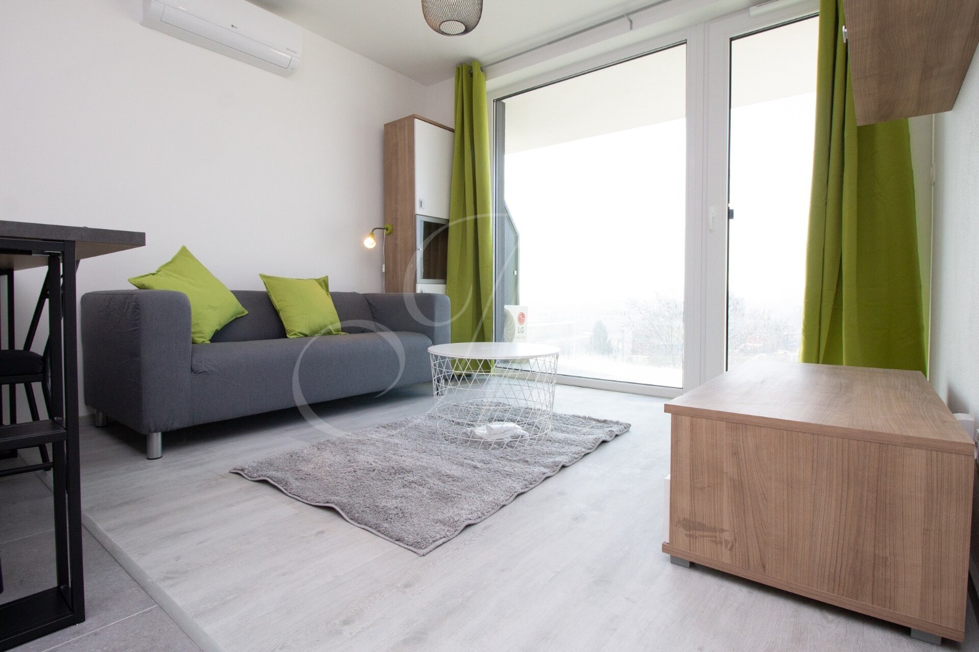 Slnečný zariadený 2i byt v novostavbe s krásnym výhľadom na hrad, moderne kompletne zariadený s podlahovým kúrením a klimatizáciou, loggiou, garážovým parkovacím miestom a úložným priestorom / skladíkom hneď vedľa bytu v novostavbe Matadorka.