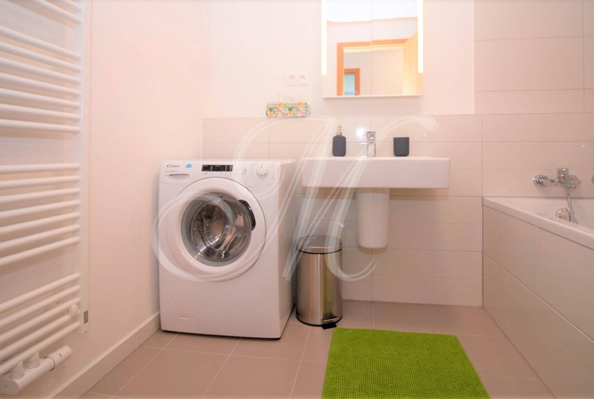 Moderný 2-izbový byt (59 m2) situovaný na 2. poschodí v novostavbe s výťahom pozostáva z predsiene, obývacej izby prepojenej s plne vybavenou kuchyňou, spálne, kúpeľne s vaňou a samostatnej toalety. K bytu prislúcha lodžia.