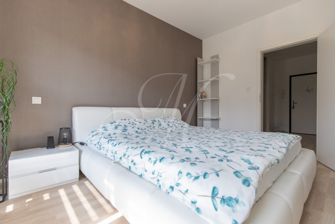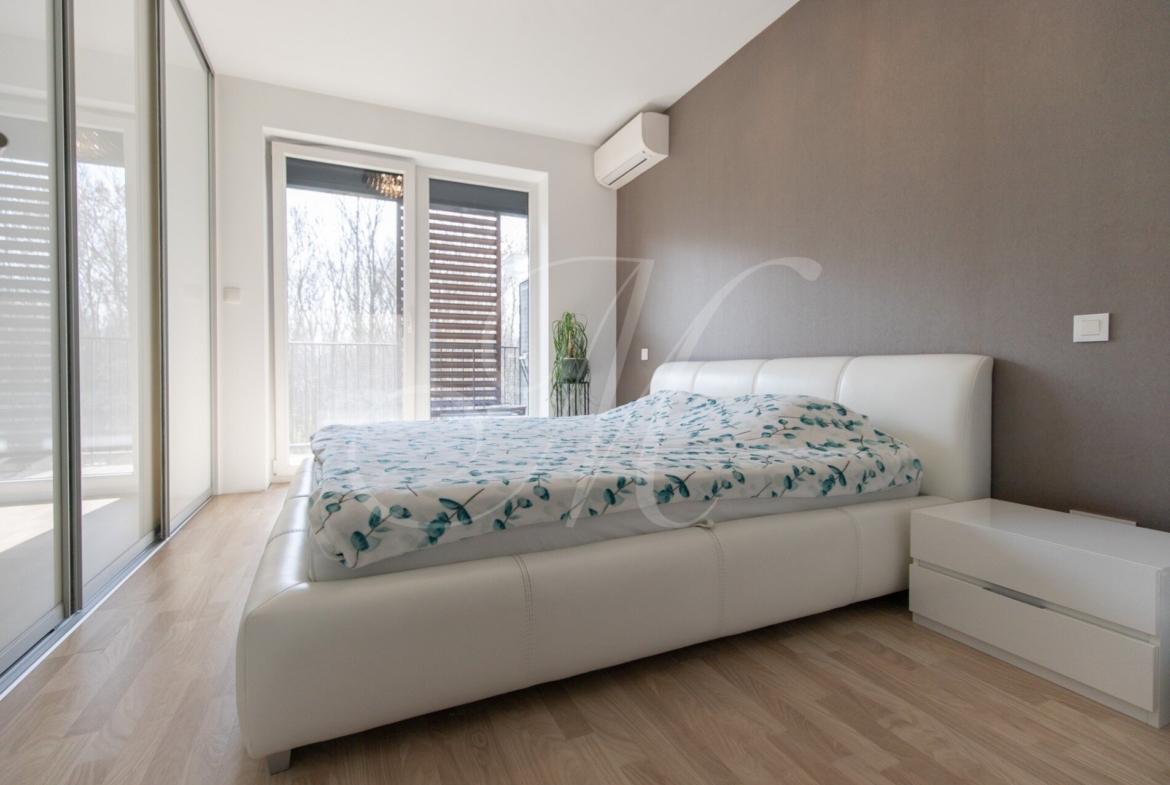 Byt sa prenajíma kompletne zariadený a ponúka kvalitné vybavenie vrátane klimatizácie, vstavaných skríň, modernej kuchyne so spotrebičmi Bosch, chladničky Miele a práčky. Súčasťou je optický internet a bezpečnostné prvky ako čipový vstup a kamerový systém.