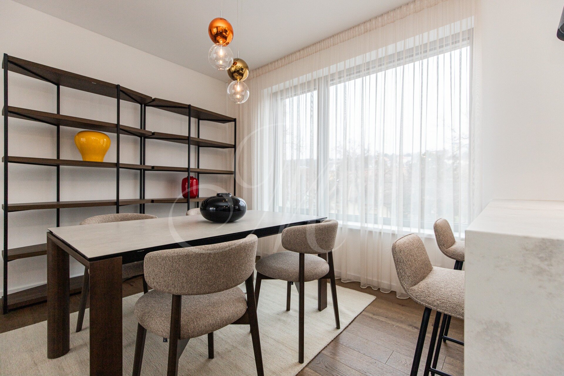 Byt je vybavený podlahovým kúrením a klimatizáciou, vonkajšími žalúziami, drevenými podlahami v celom byte. Zariadený je nábytkom z Talianska, z kvalitným materiálov pre čo najvyšší komfort bývanie.