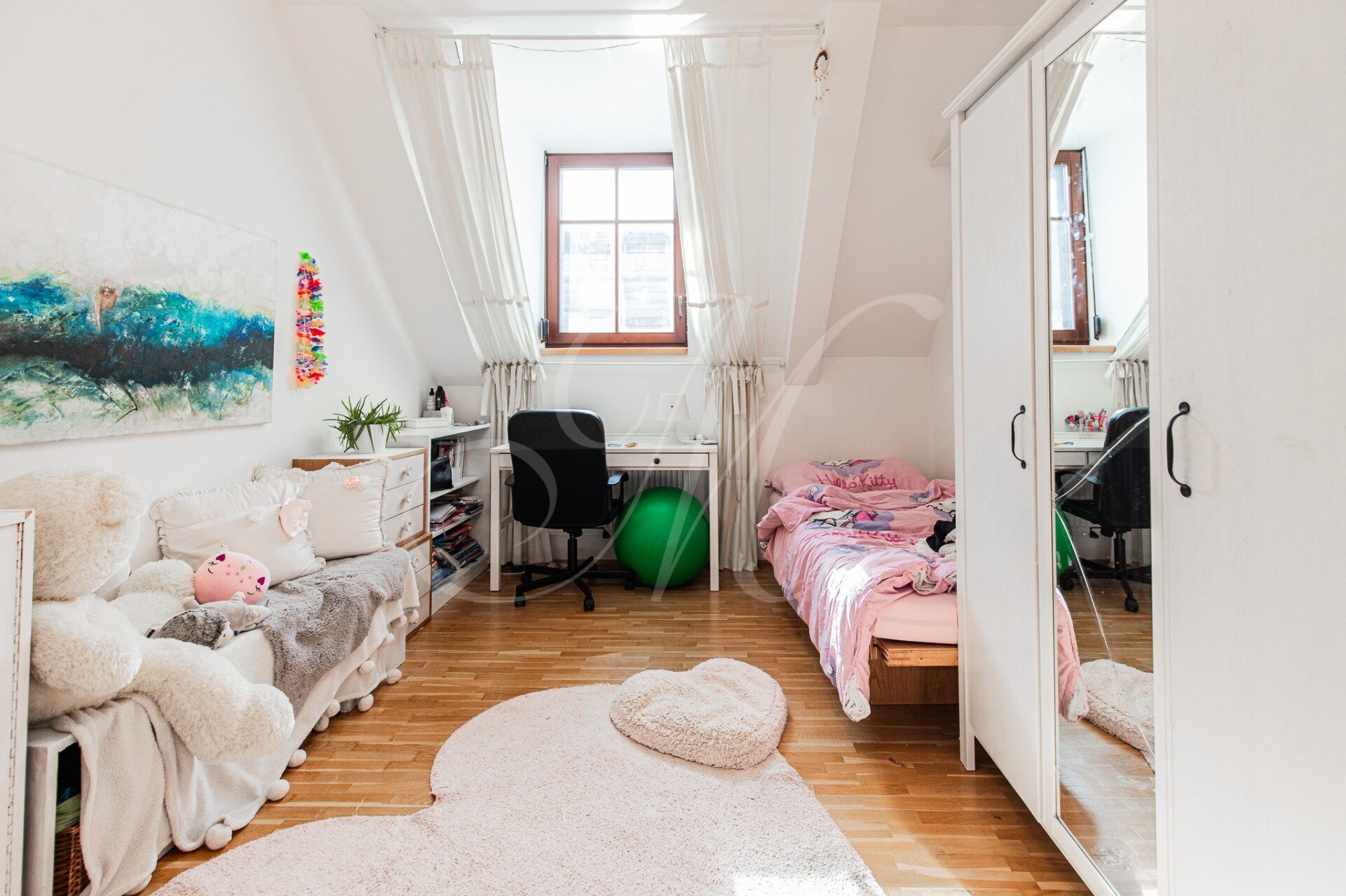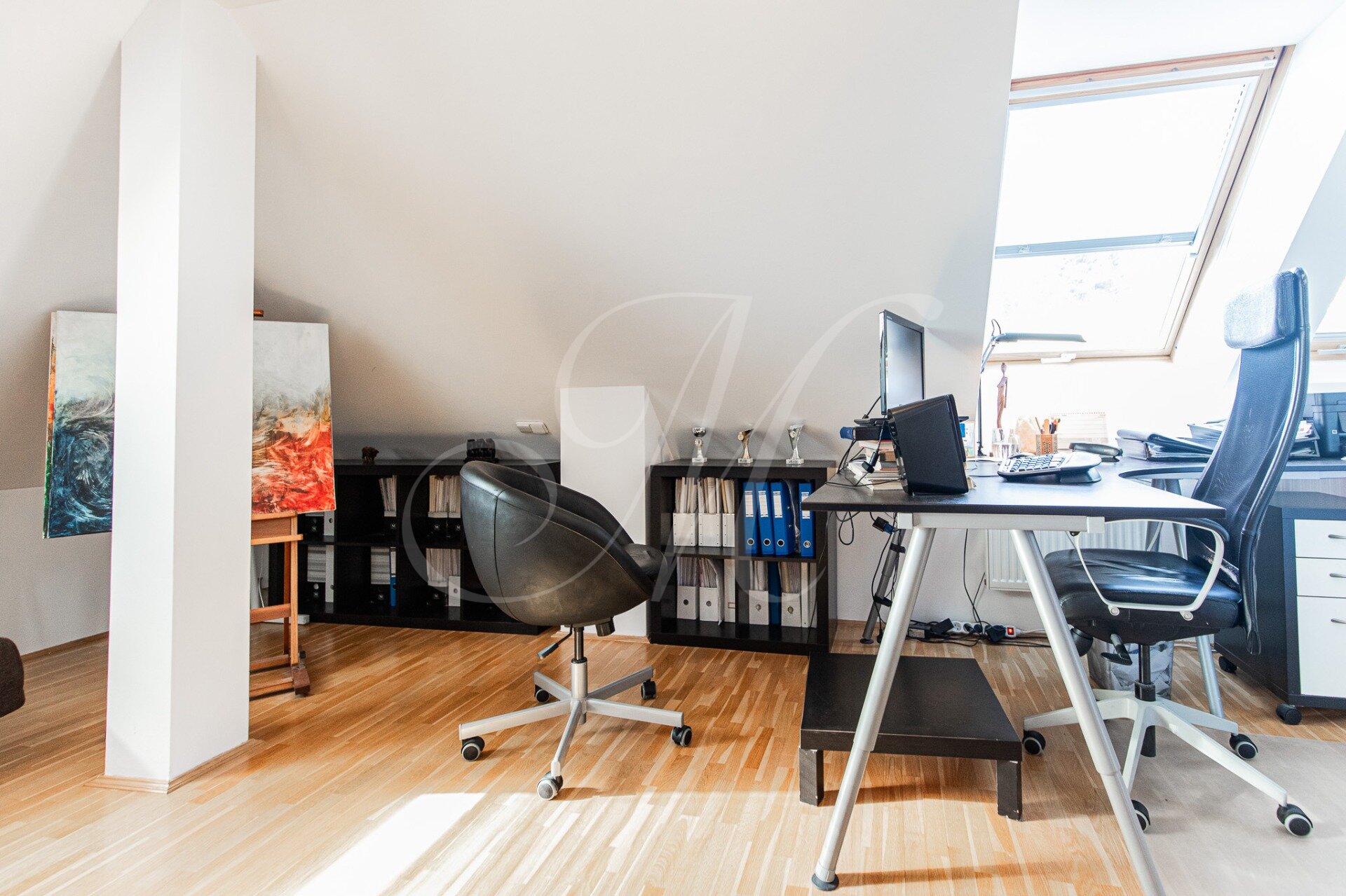 Mezonet je dispozične riešený vstupnou halou s úložným priestorom, samostatným WC, veľkou obývacou miestnosťou prepojenou s plne vybavenou kuchyňou so spotrebičmi (chladnička, mraznička, el. rúra, sporák, umývačka riadu) a jedálenskou časťou. Ďalej sa v byte nachádzajú dve samostatné spálne so šatníkom. Na druhom poschodí sa nachádza samostatná miestnosť s priechodnou pracovňou, kúpeľňa so sprchovým kútom a WC.