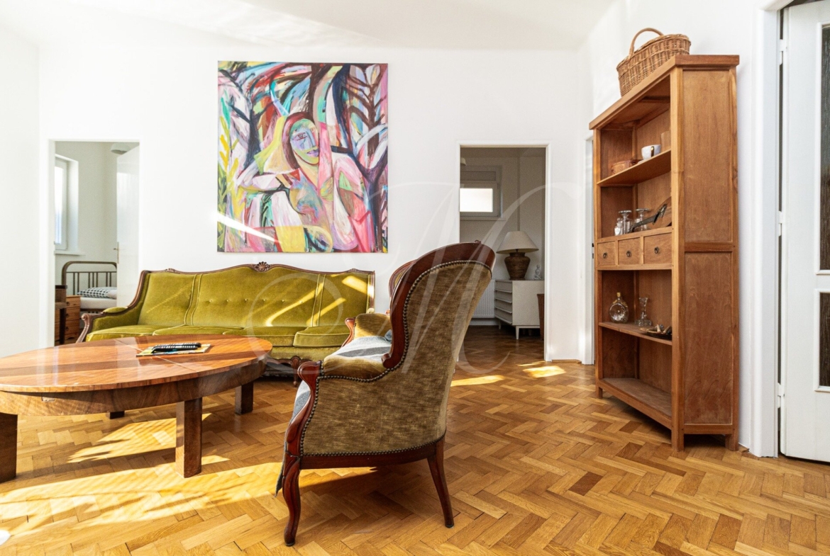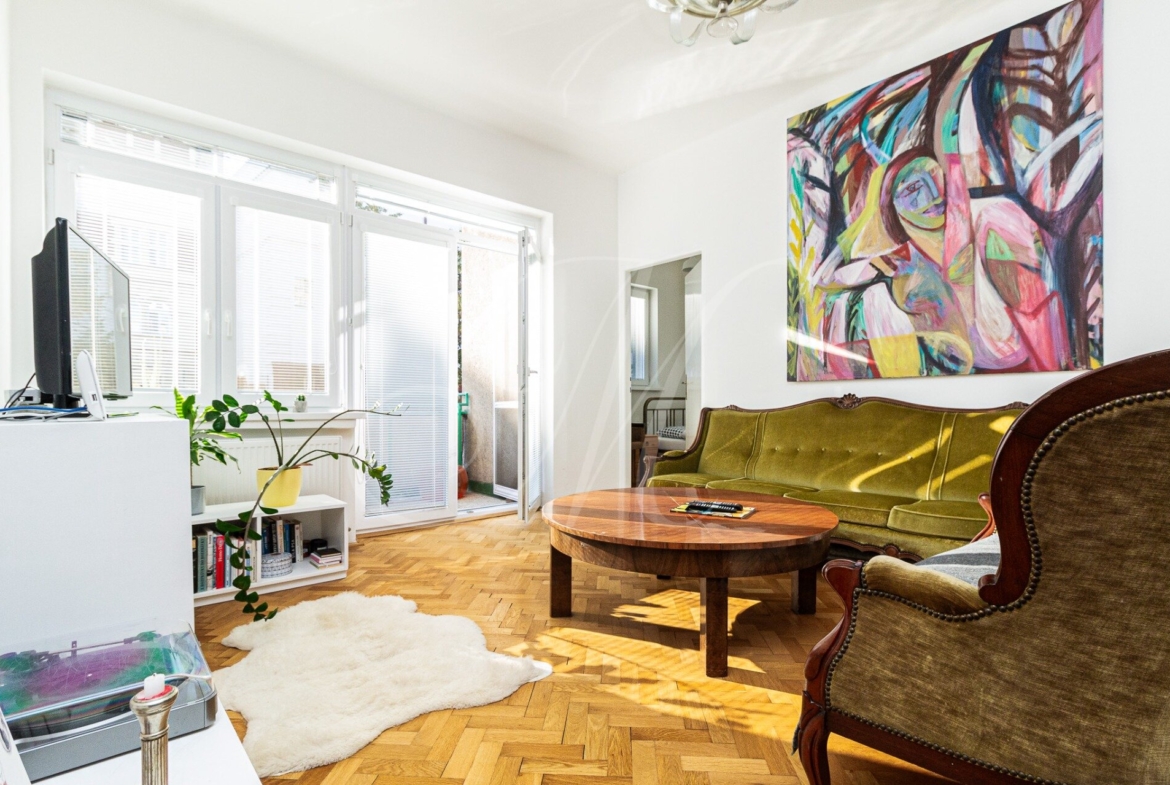 V byte sa nachádzajú 3m stropy, drevené podlahy a plynový kotol.