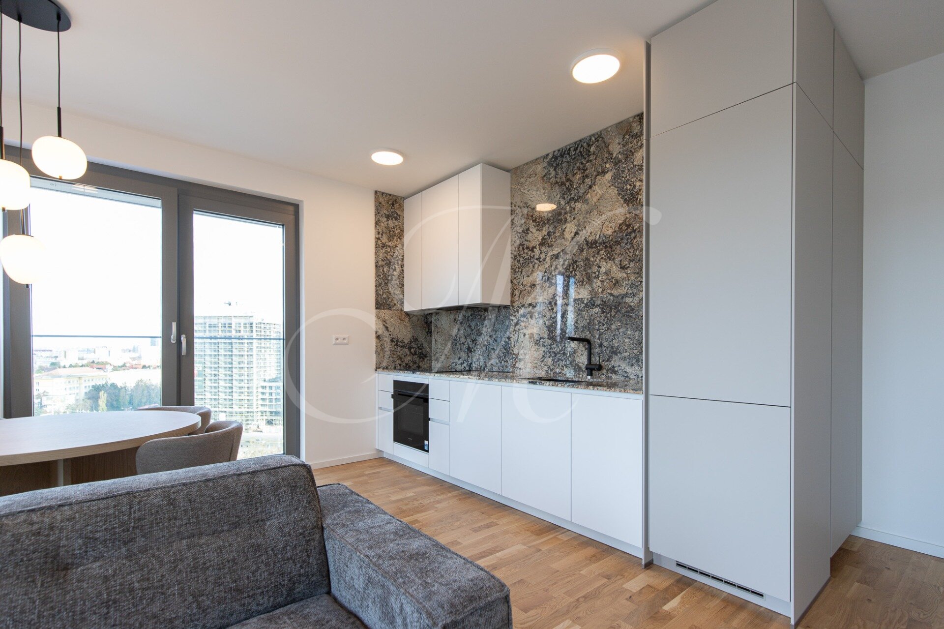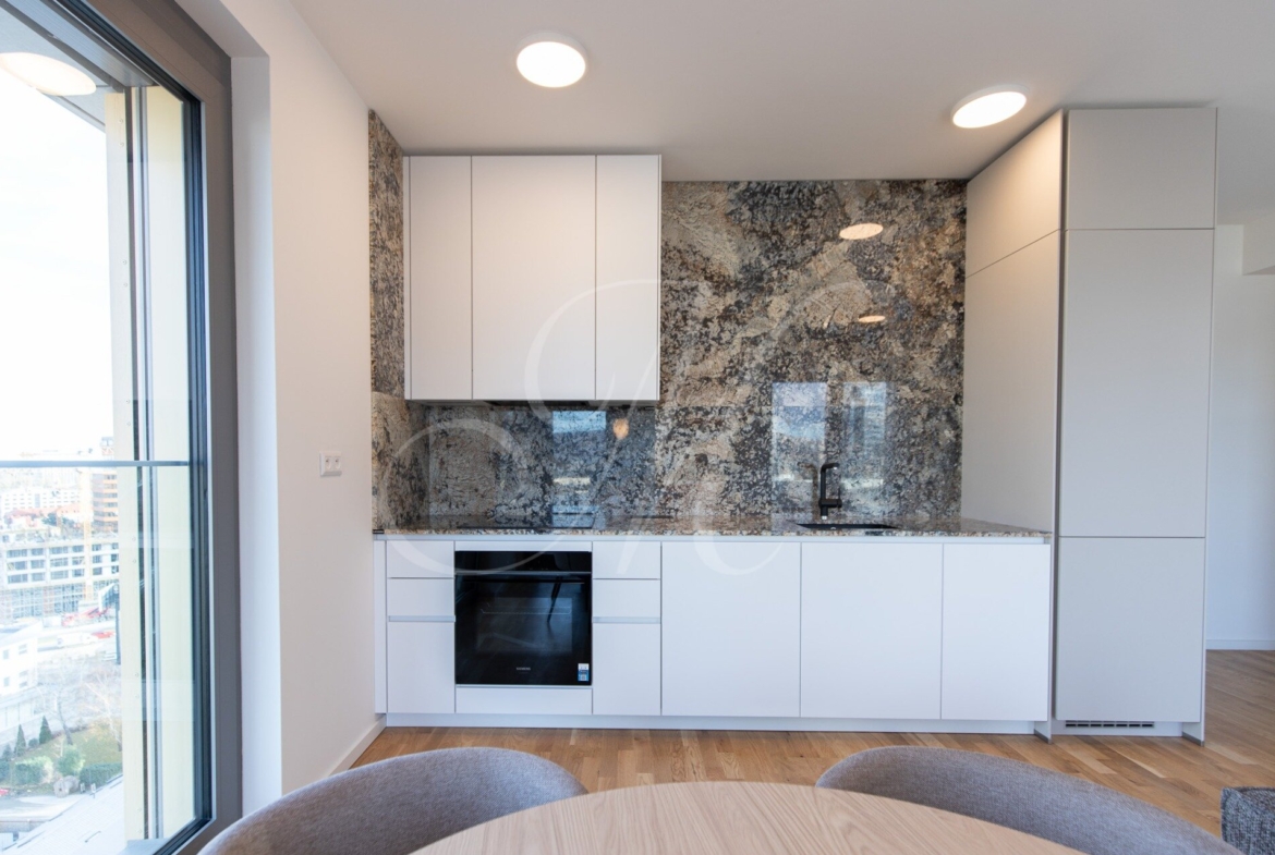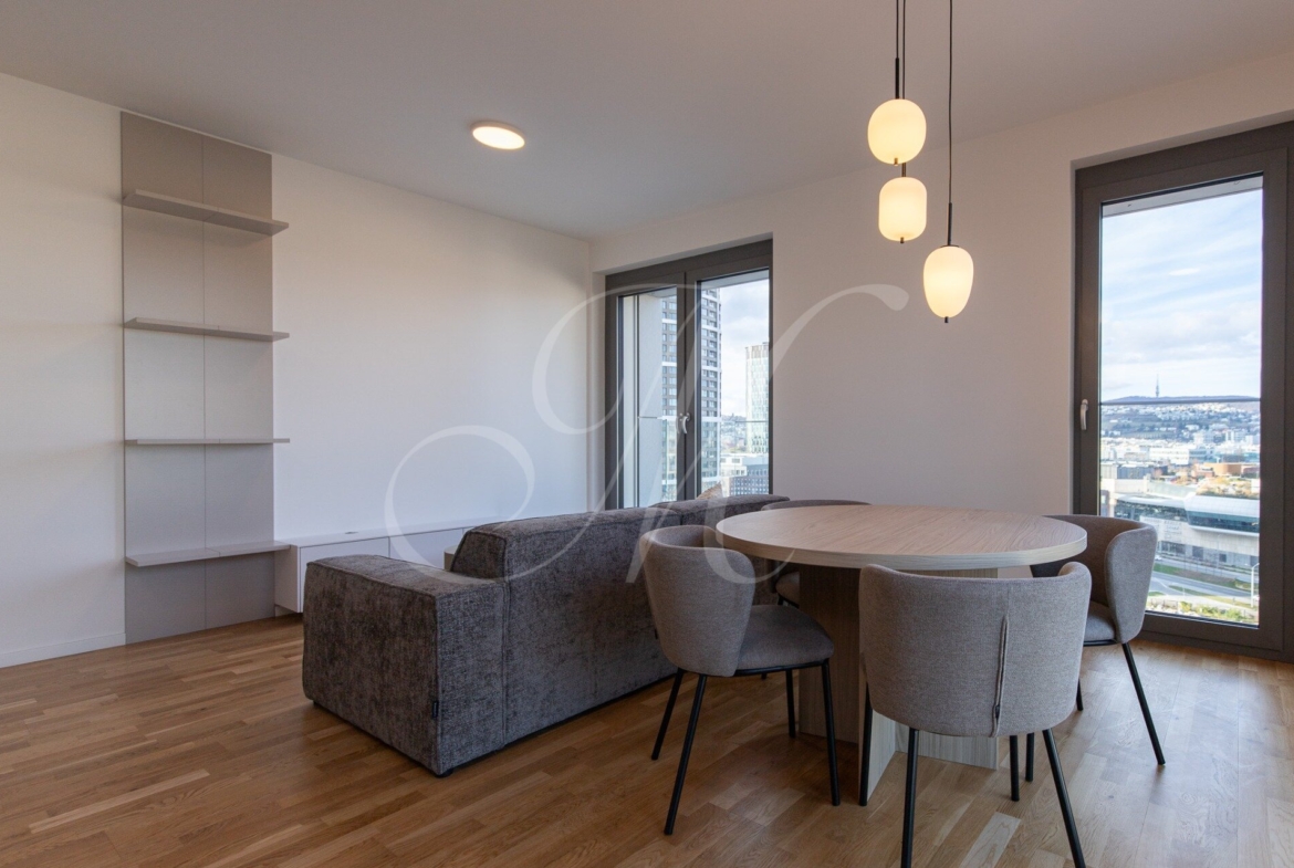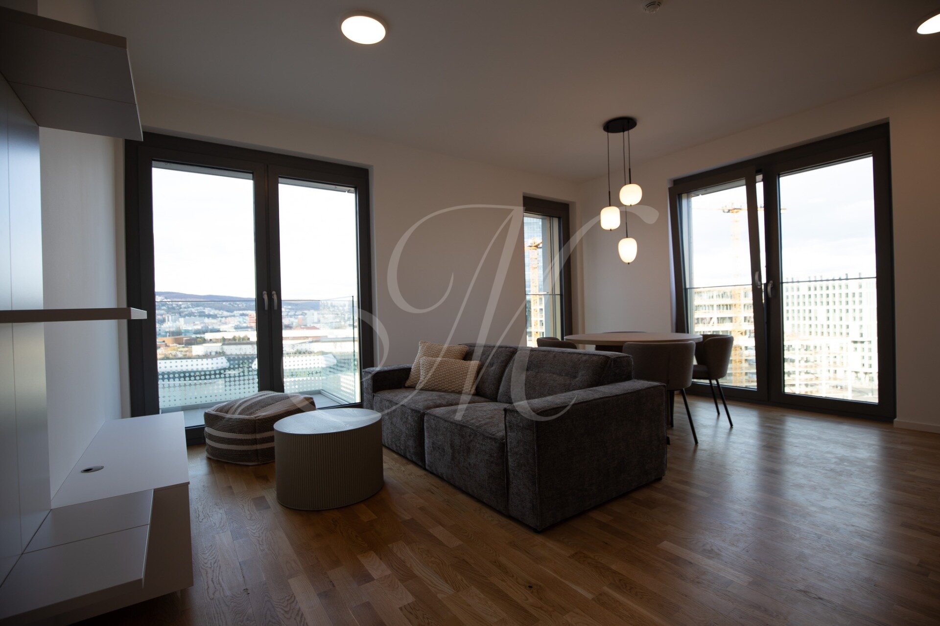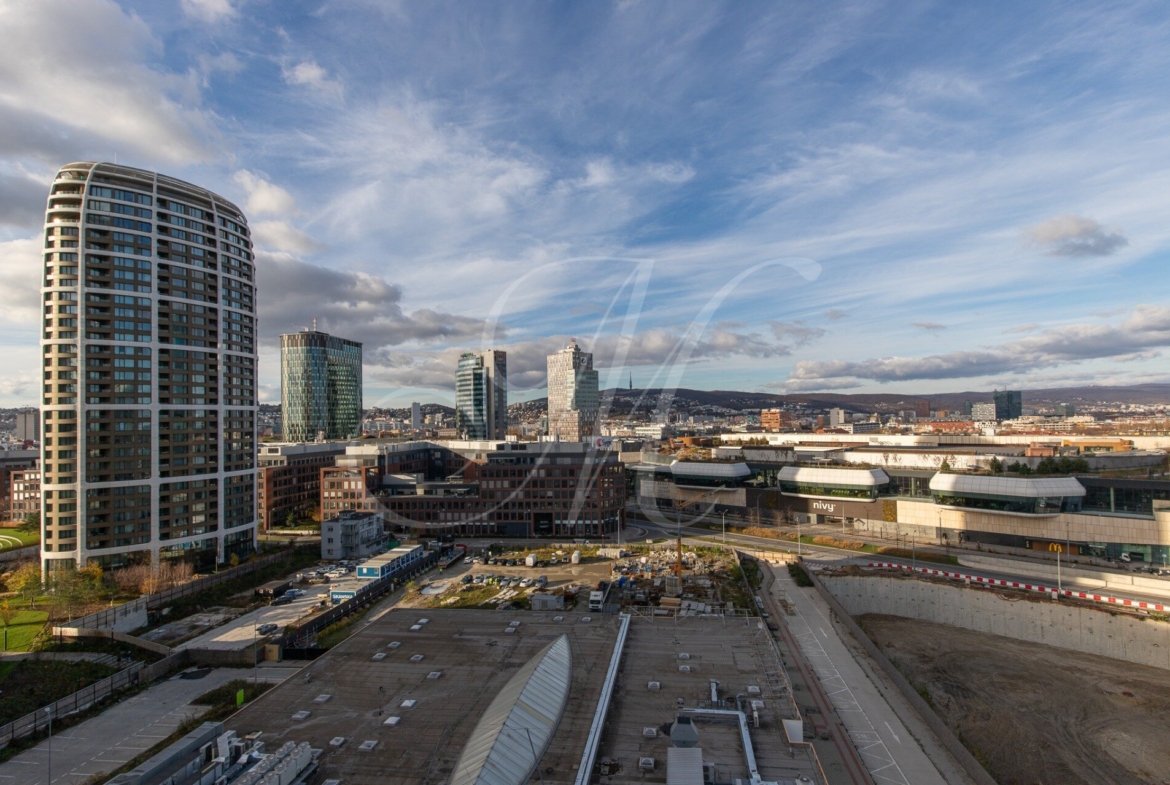 Kompletne zariadený rohový 3-izbový apartmán s výmerou cca 68 m² sa nachádza na 13. poschodí novostavby Metropolis a ponúka výhľad na OC Nivy, Kolibu a Dunaj.