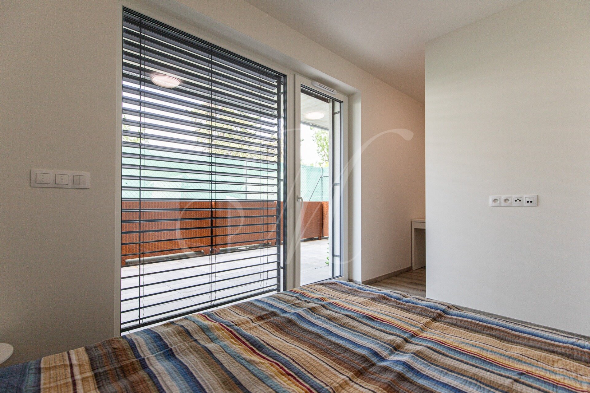 Byt je vybavený vonkajšími elektrickými žalúziami. K bytu prislúcha súkromná dláždená terasa.