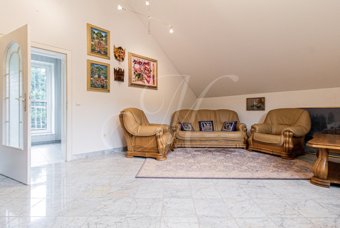 Rodinný dom pozostáva z dvoch poschodí, suterénu a podkrovia. V suteréne sa nachádza bazén s proti prúdom, dielňa, sklad a garáž. Na prízemí je umiestnená kuchyňa so spotrebičmi, jedáleň, pracovňa a veľká izba. Nachádza sa tu aj komora a kúpeľňa s WC. Na prvom poschodí je umiestnená obývacia izba, manželská spálňa, šatník a druhá kúpeľňa s toaletou. V podkroví sa nachádza hobby priestor.