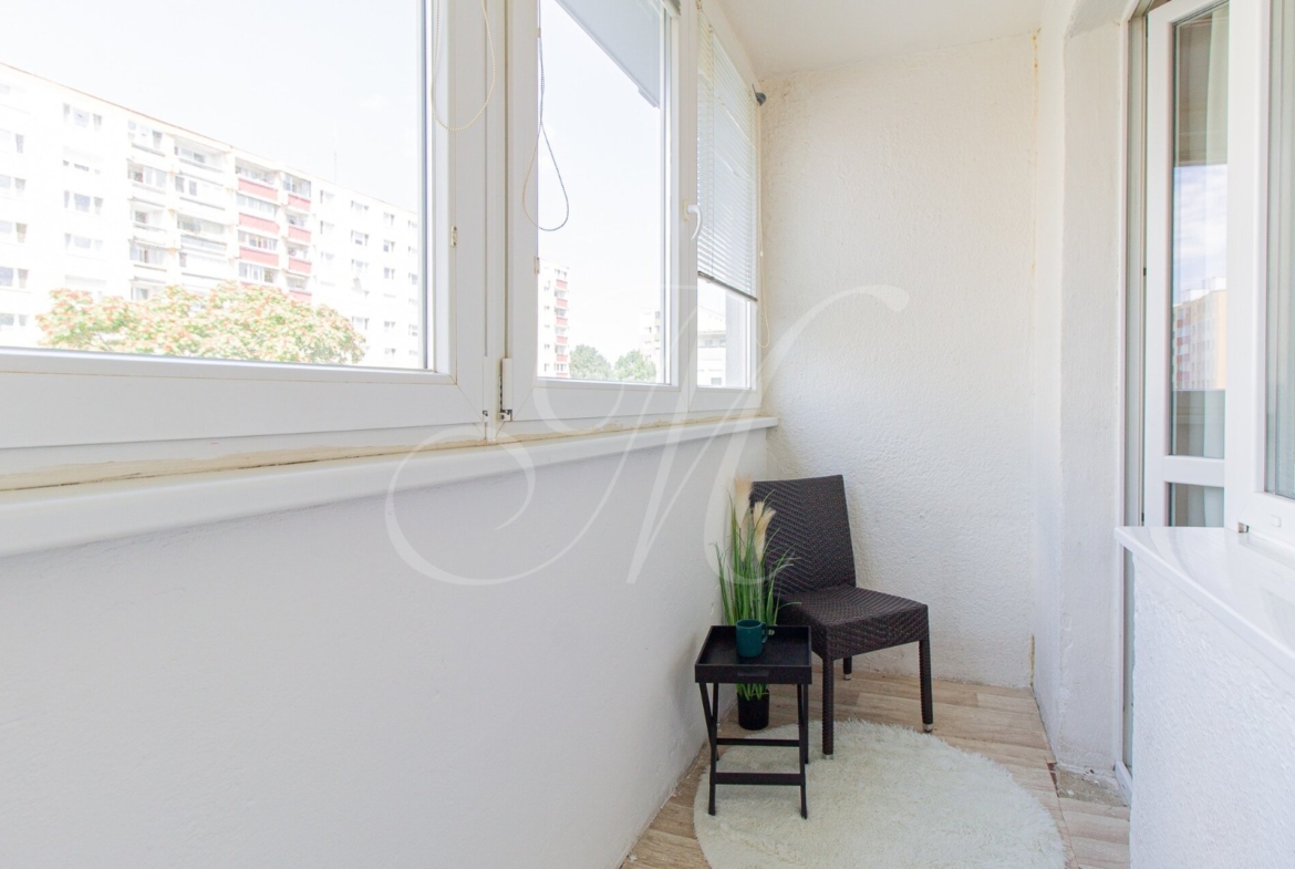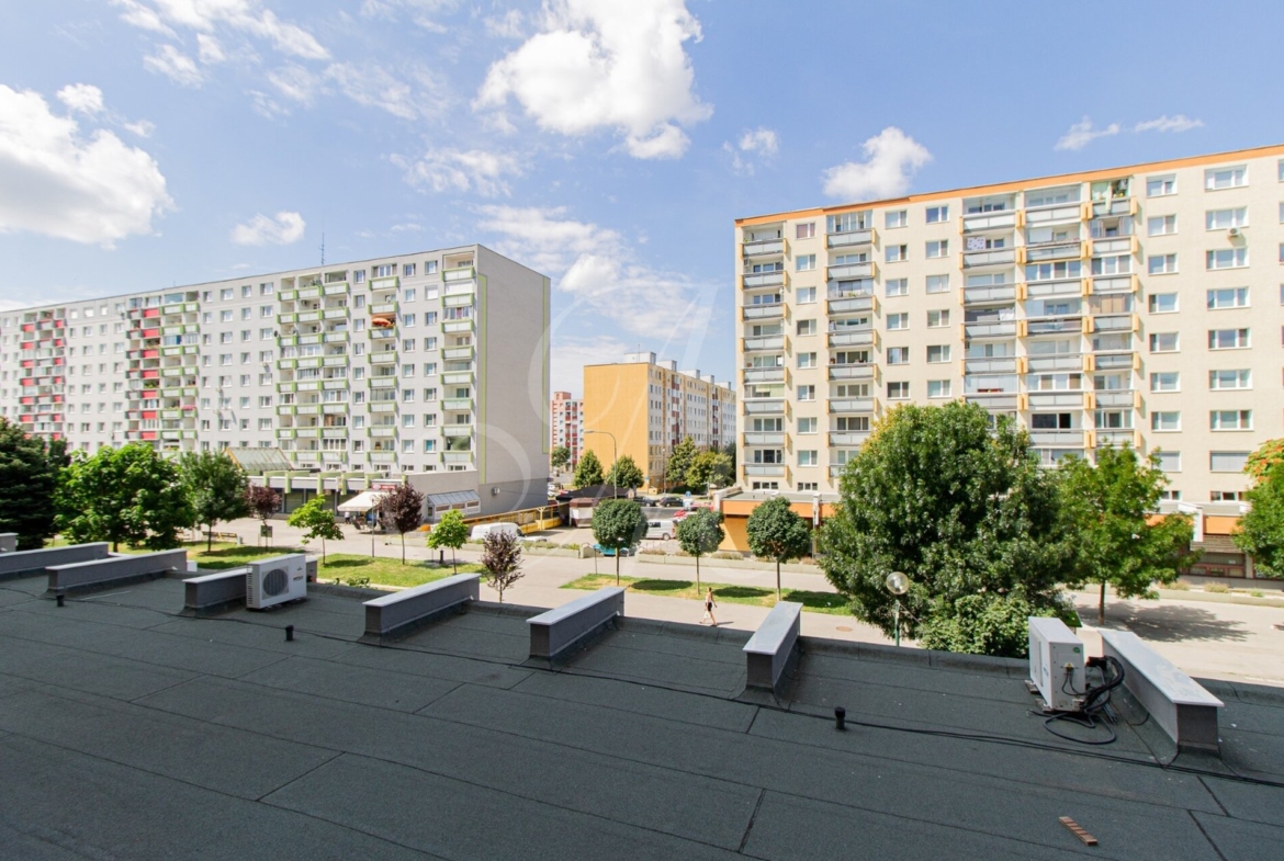 Výmera bytu je 41,9 m2 bez plochy loggie. Priestranná zasklená loggia má plochu 4,7 m2.