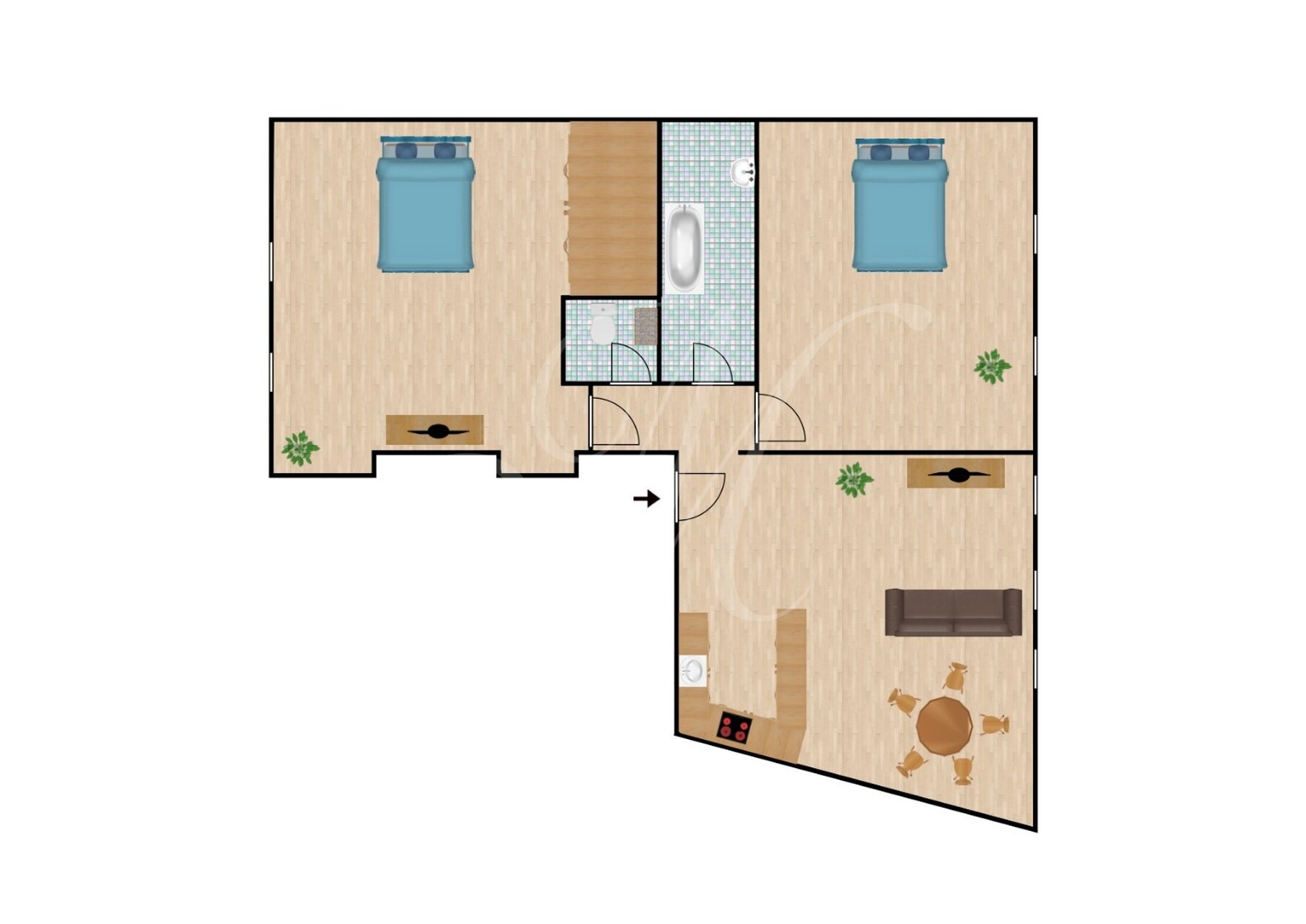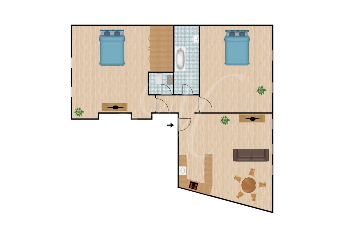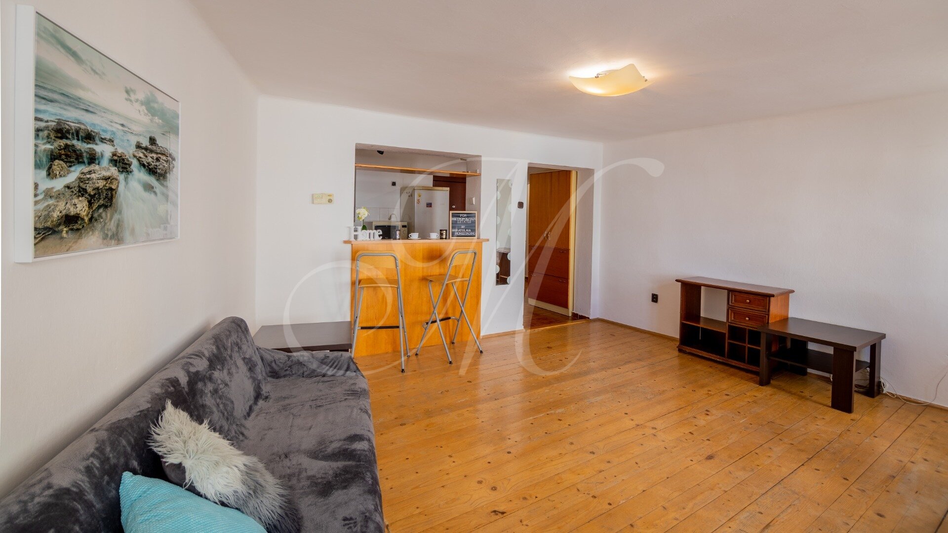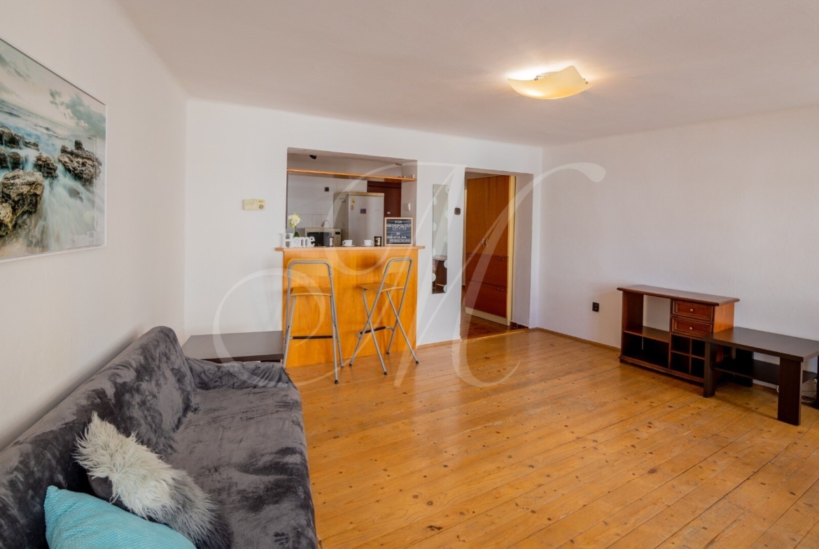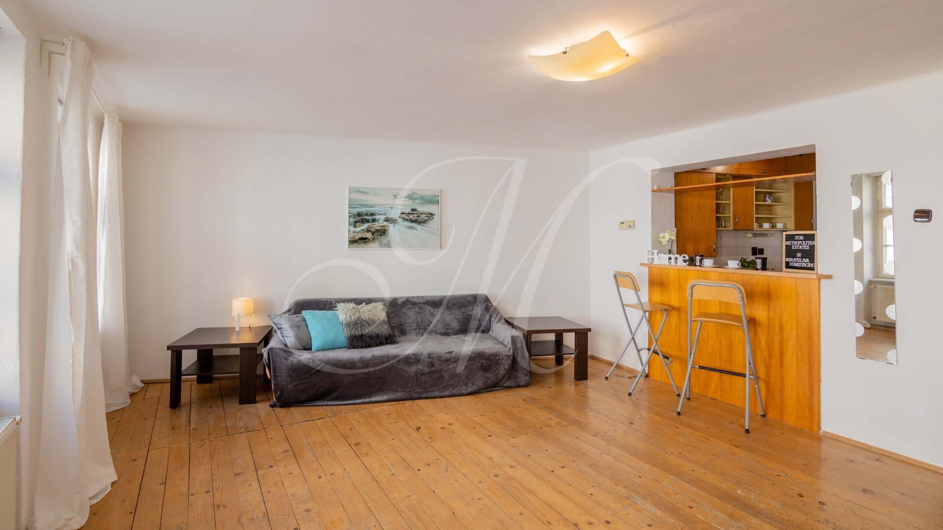 3-izbový byt, ktorý sa nachádza na 1. poschodí (3) v bytovom dome bez výťahu, ktorý bol postavený v roku 1901. Celková podlahová plocha bytu predstavuje 89 m2. Vchádza sa cez vstupný priestor priamo do kuchyne. Kuchyňu a obývaciu miestnosť predeľuje pult. Z obývacej miestnosti je výhľad na Historickú budovu národnej rady SR a Kostol svätého Jána z Mathy. Z kuchyne sa dá dostať do chodby, ktorá spája dve spálne, kúpeľňu a toaletu. Spálňa vedľa obývacej miestnosti smeruje severne s výhľadom na Hurbanovo námestie. Z prvej spálne sa smerom do zadnej časti bytu po pravej strane nachádza kúpeľňa a hneď za ňou nasleduje toaleta. V zadnej časti bytu sa nachádza druhá spálňa, ktorá je orientovaná na juh s výhľadom do dvora, kde sú stromy a Michalská ulica.