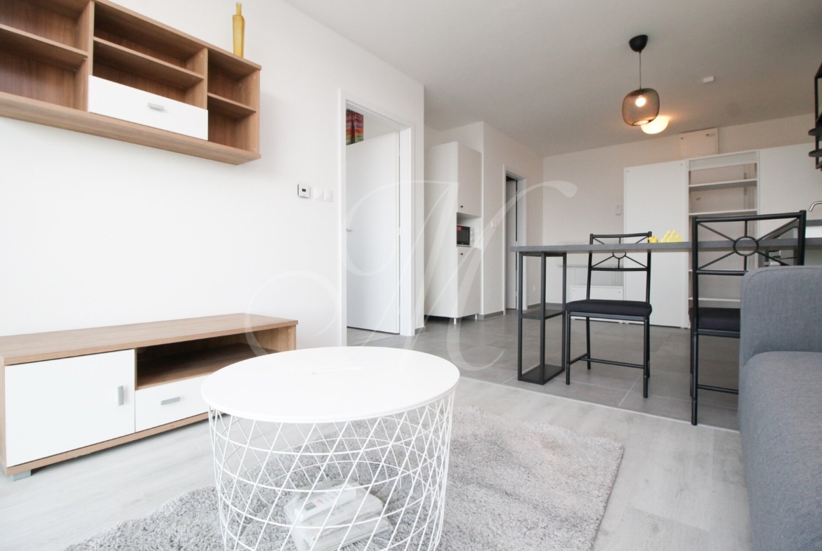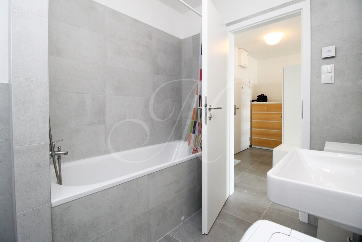 Slnečný zariadený 2i byt v novostavbe s krásnym výhľadom na hrad, moderne kompletne zariadený s podlahovým kúrením a klimatizáciou, loggiou, garážovým parkovacím miestom a úložným priestorom / skladíkom hneď vedľa bytu v novostavbe Matadorka.