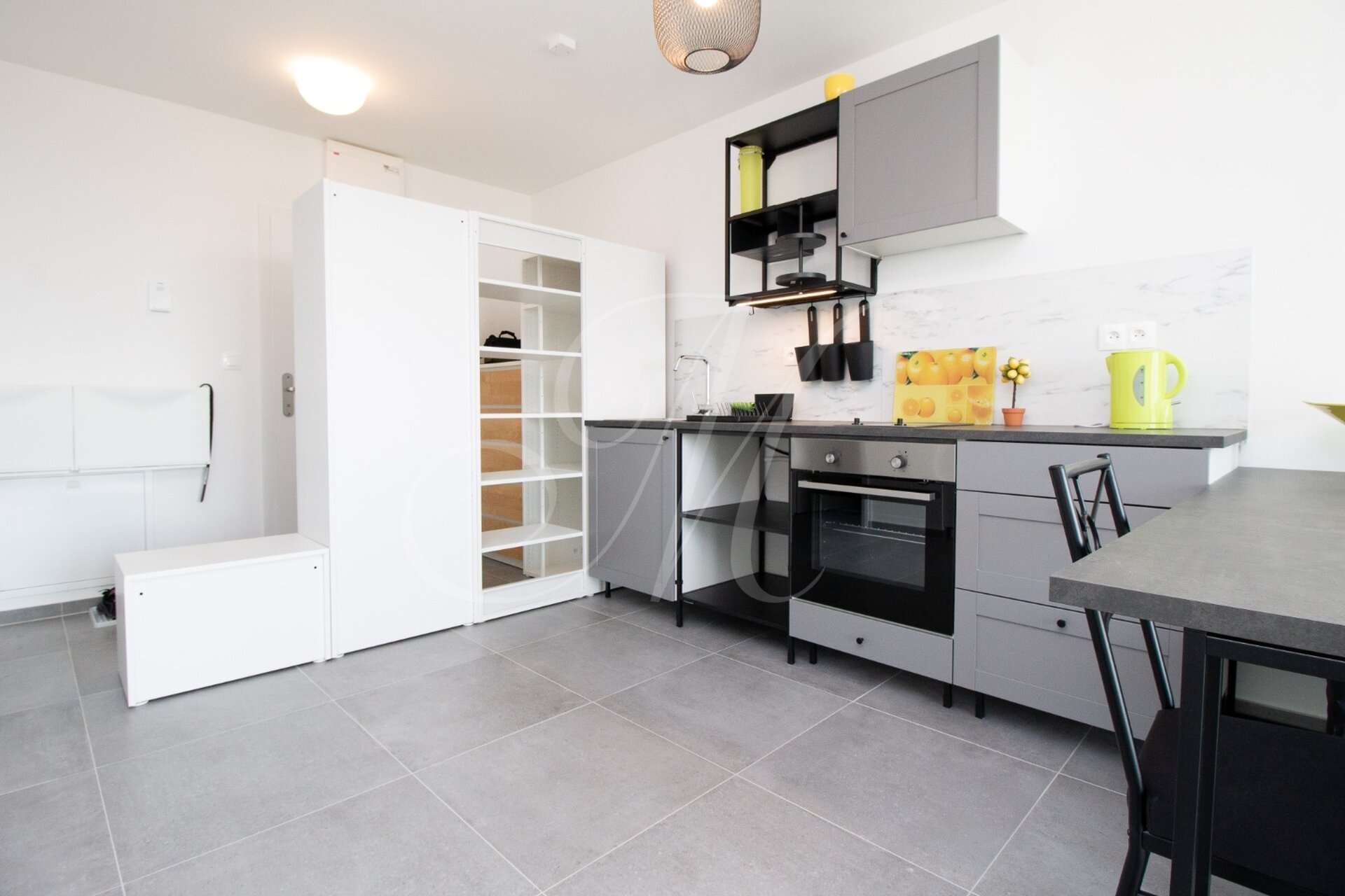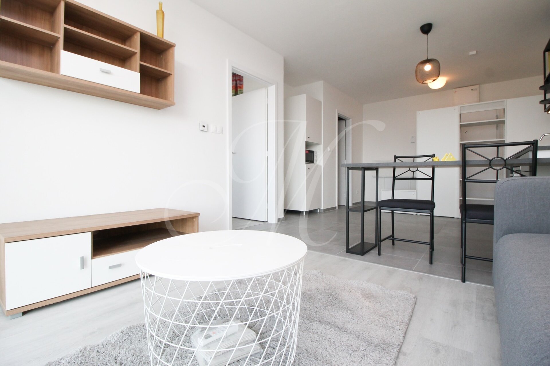 Kompletne zariadený modernám nábytkom, moderná kuchynská linka s novými spotrebičmi: elektrickou varnou doskou a elektrickou rúrou na pečenie, s digestorom, chladničkou s mrazničkou, mikrovlnnou rúrou, jedálenským stolom. V kúpeľni je vaňa a práčka, toaleta.