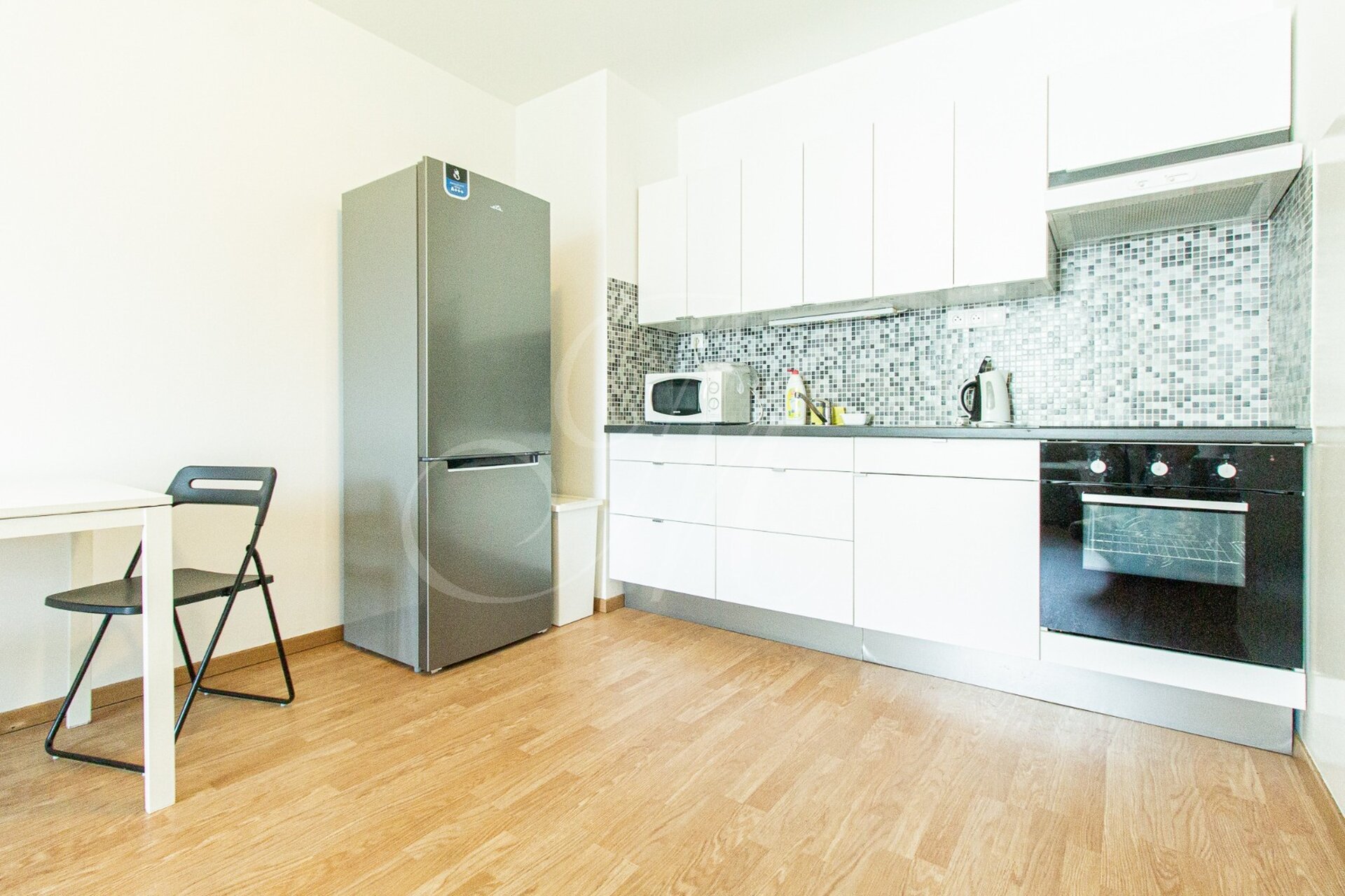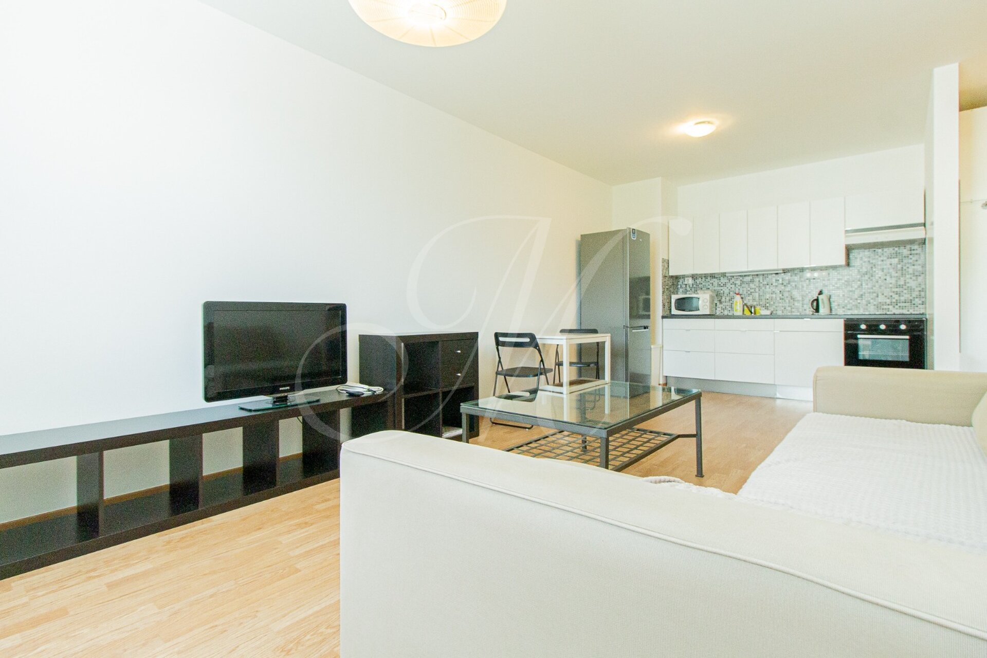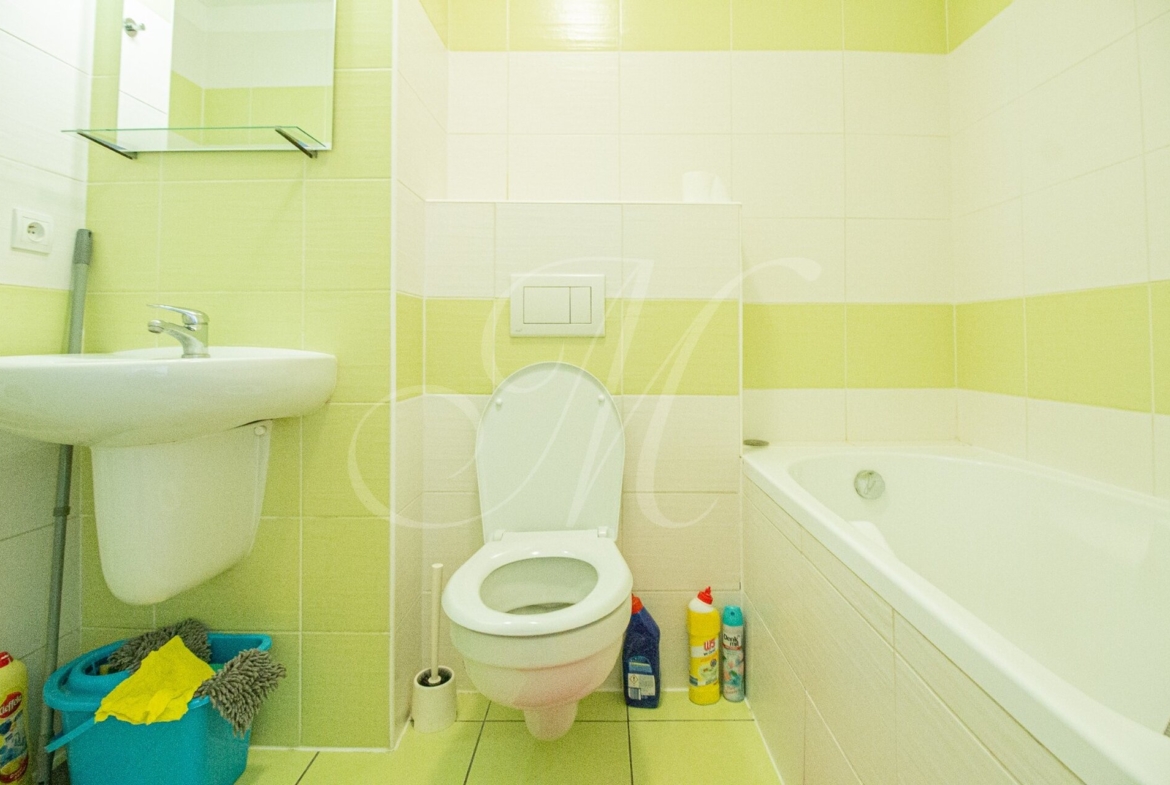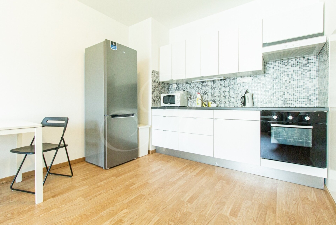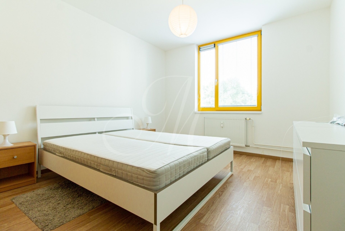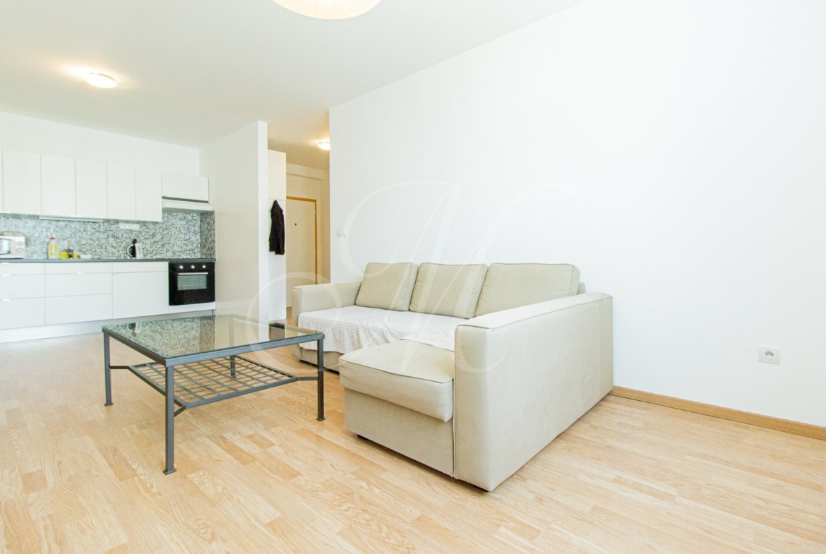 Byt s rozlohou 47m2 sa nachádza na 3. poschodí bytového domu s výťahom. Dispozične sa skladá z kompletne zariadeného obývacieho priestoru, kuchyne so spotrebičmi (chladnička, mraznička, el. rúra, sporák, umývačka riadu, mikrovlnná rúra) a manželskej spálne s úložným priestorom. K bytu prislúcha aj kúpeľňa s vaňou, toaleta a práčka.